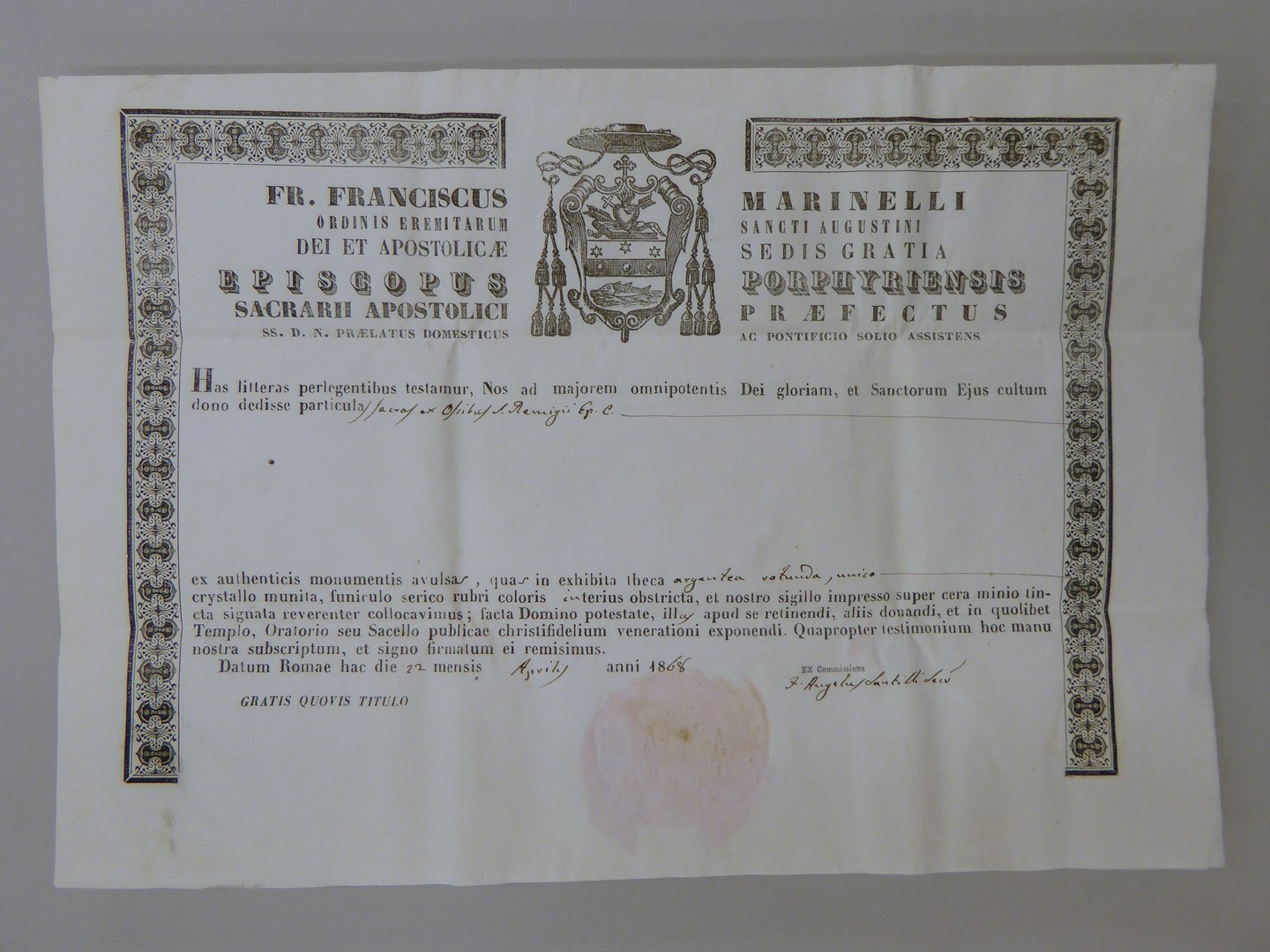 Echtheidsverklaring bij reliek van H. Remigius