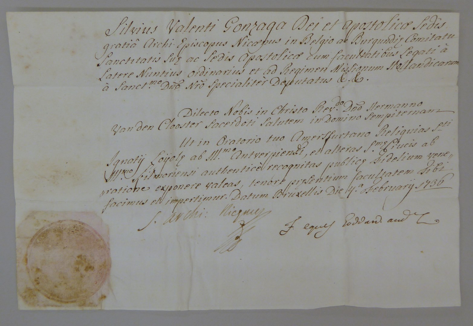 Echtheidsverklaring bij reliek van H. Ignatius van Loyola en het H. Kruis