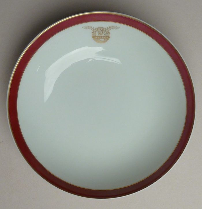 Soepkom met rode rand gebruikt door paus Paulus VI gebruikt in vliegtuig van Rome naar Bogota