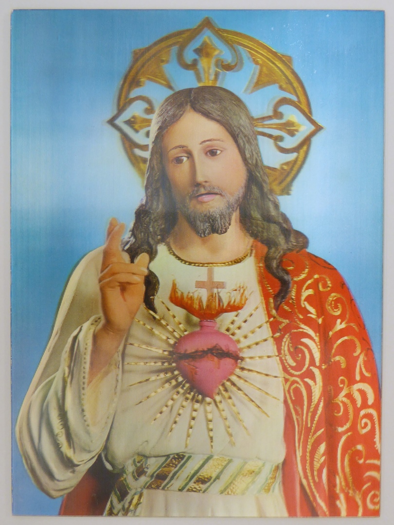 Christus van het Heilig Hart op kleurenplaat met dieptewerking