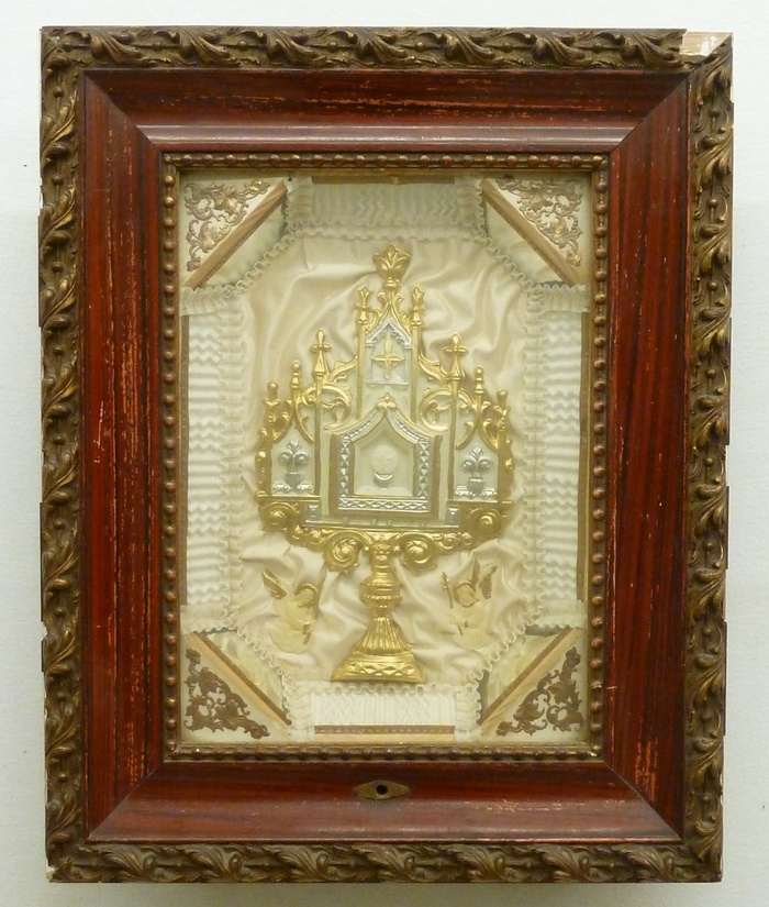 Voorstelling van uitgestelde monstrans in kast met speeldoos