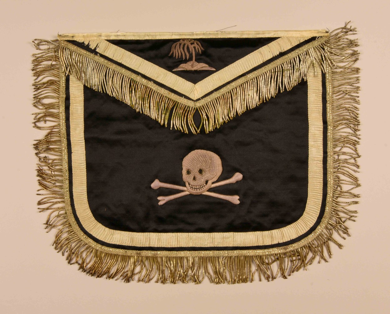 Zwart schootsvel met doodskop van gehoogd zilverdraad