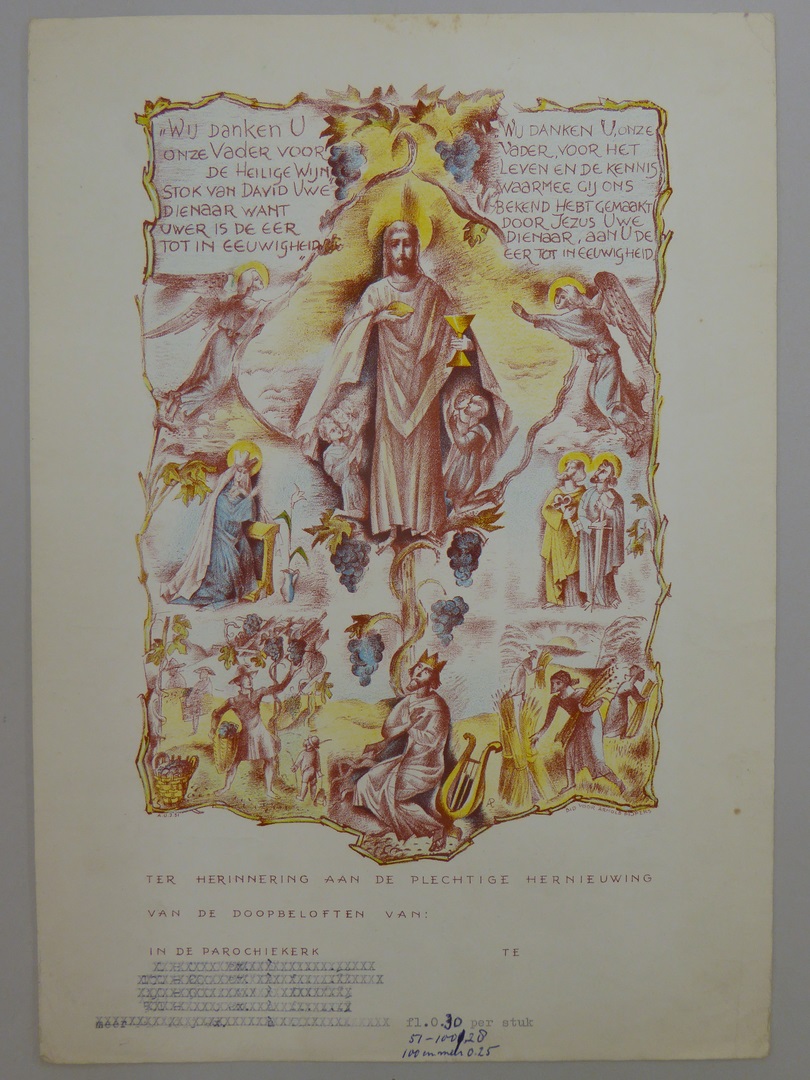 Herinnering plechtige hernieuwing doopgeloften (3 stuks) met Christus en koning David