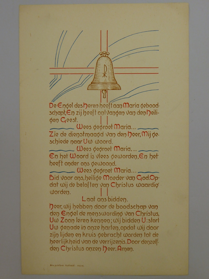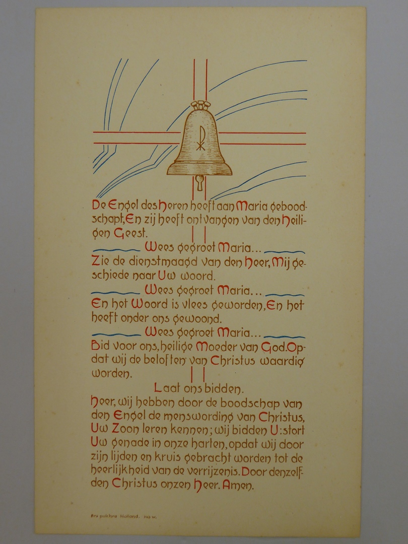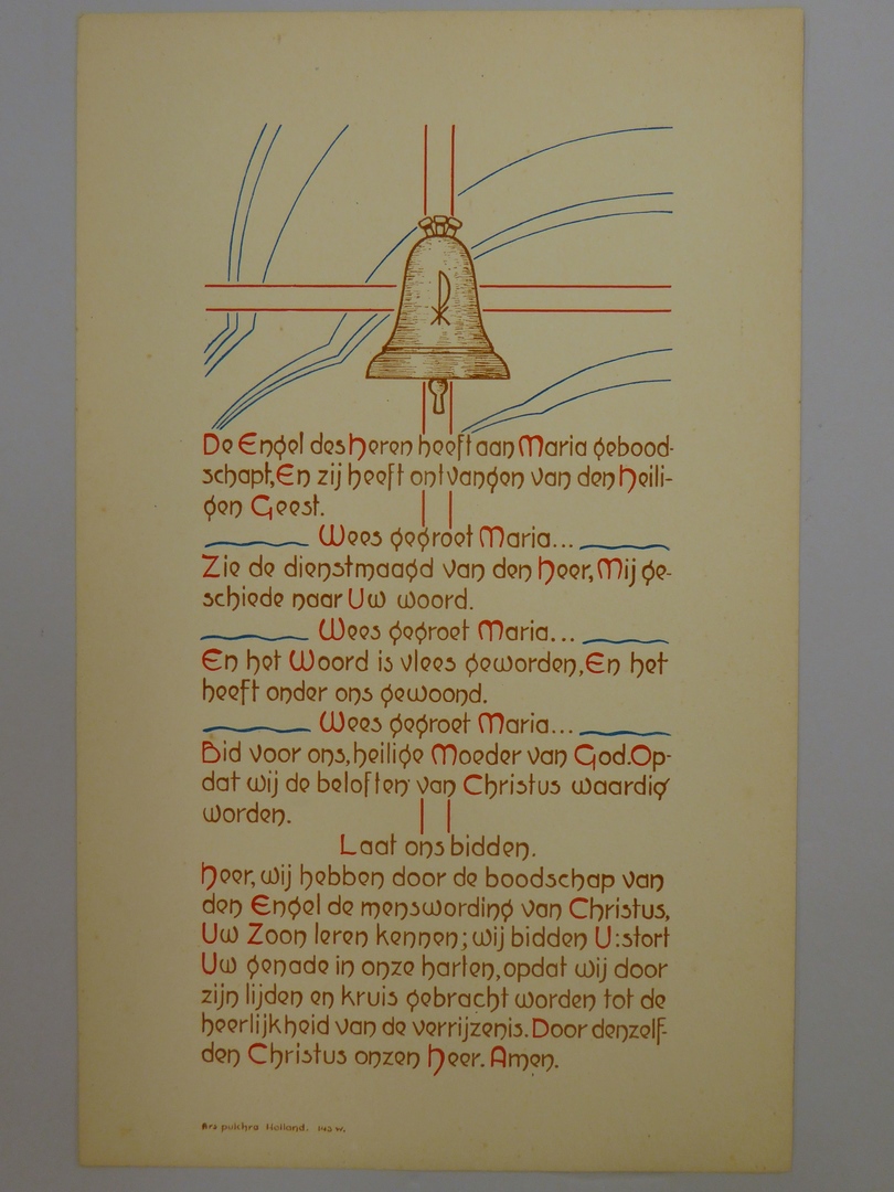 Gebedsprent (5 stuks) met "Wees gegroet Maria", afbeelding van klok op kruis