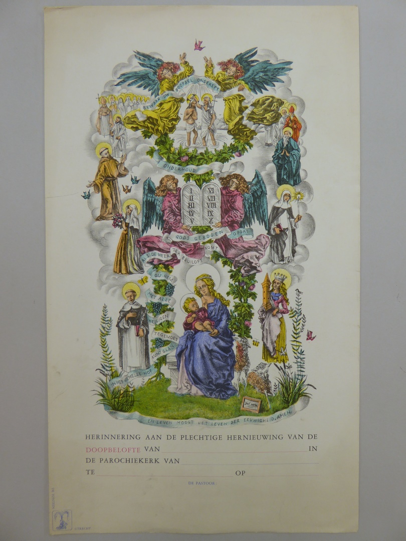Vormselprent met Maria met kind, engelen met stenen tafelen