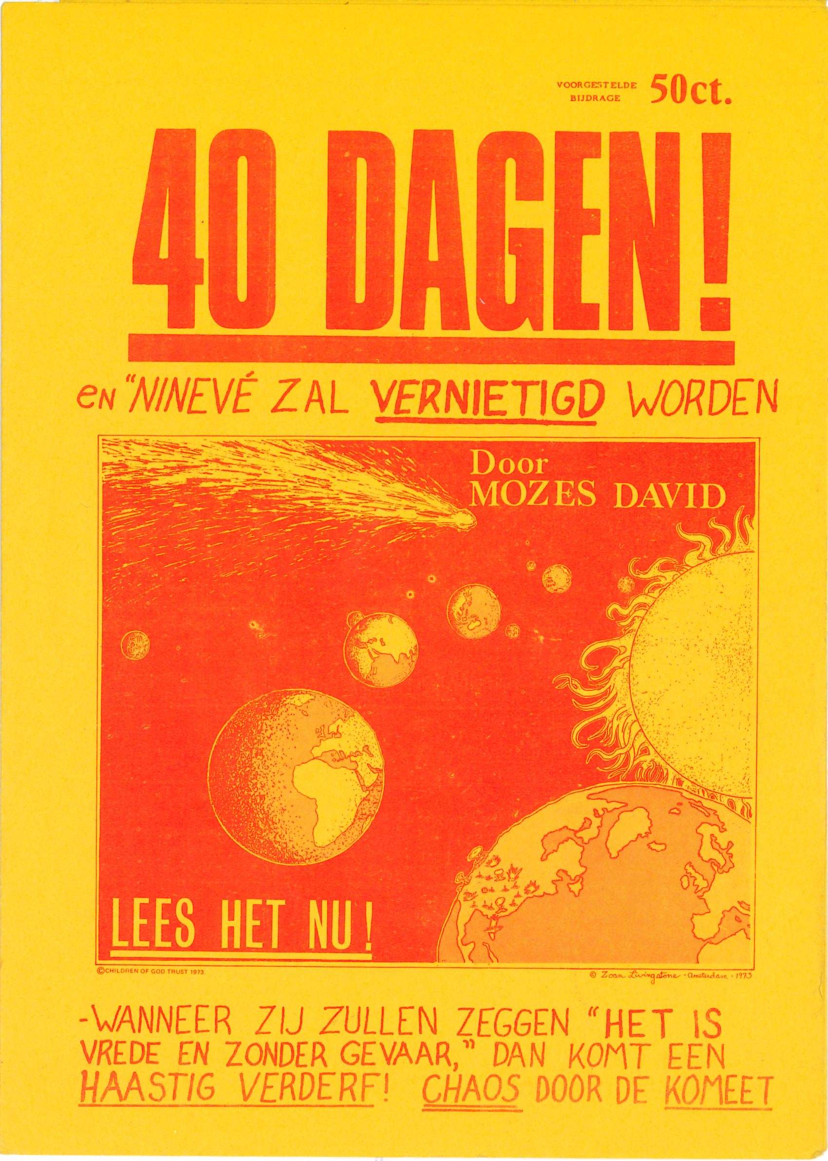 Brochure met de titel "40 dagen en Ninive zal vernietigd worden"