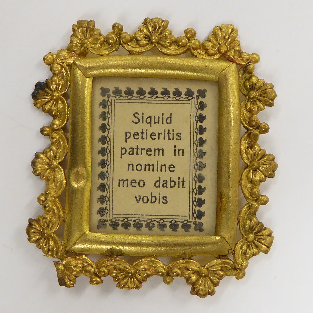 Speelgoedcanonbord met "Siquid peti eritis patrem ..."