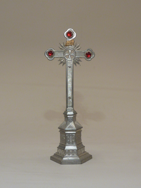 Kruisje op zeshoekige voet met drie rode steentjes op uiteinden
