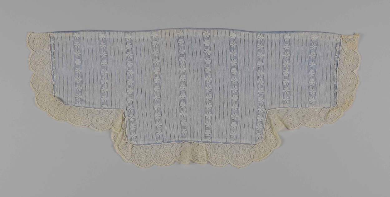 Wit kanten speelgoedaltaardwaal, gevoerd met blauw