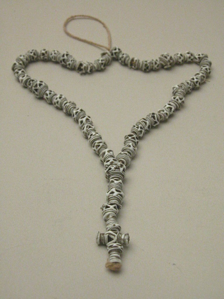 Rozenkrans met ajour bewerkte wit-glazen kralen