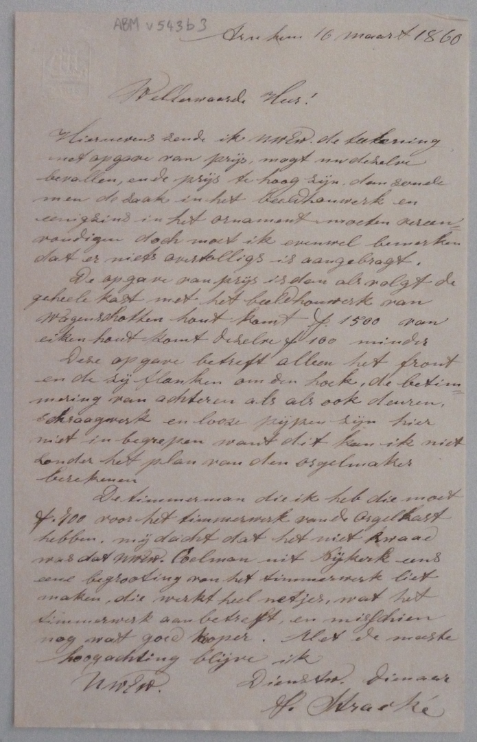 Correspondentie over ontwerp interieur kerk Hamersveld: biechtstoelen