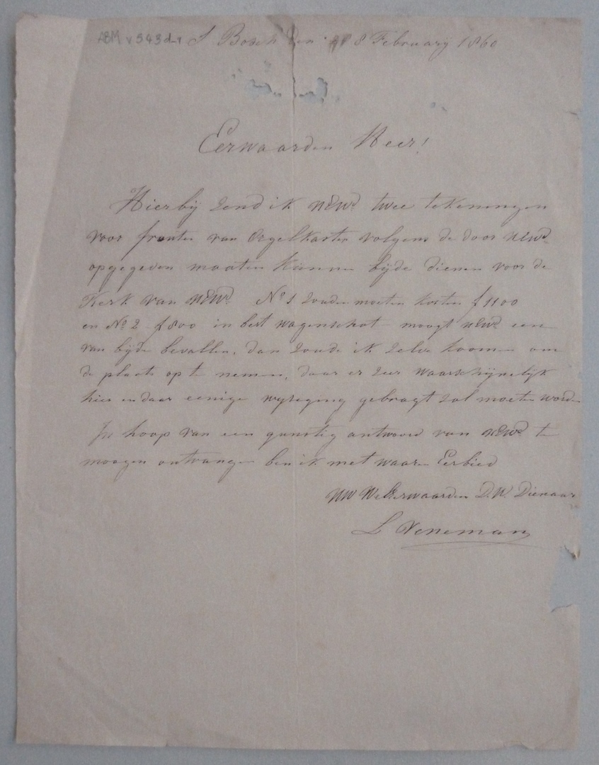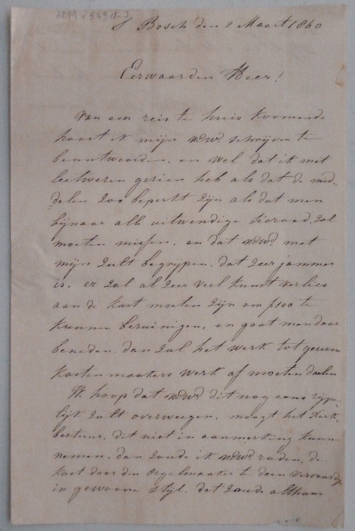Correspondentie (3 stuks) over ontwerp interieur kerk Hamersveld: orgelfront