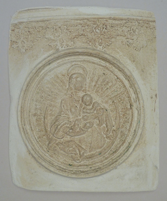 Afgietsel van reliëf met Maria met kind, van klok van N.H. kerk te Spanbroek, gegoten door Peter Waghevens in 1519