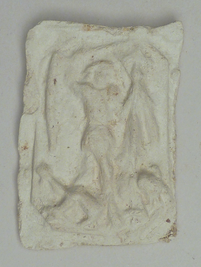 Afgietsel van reliëf met aartsengel Michael die duivel verslaat, van klok van Noorderkerk te Hoorn, gegoten door Peter van den Gheyn in 1569