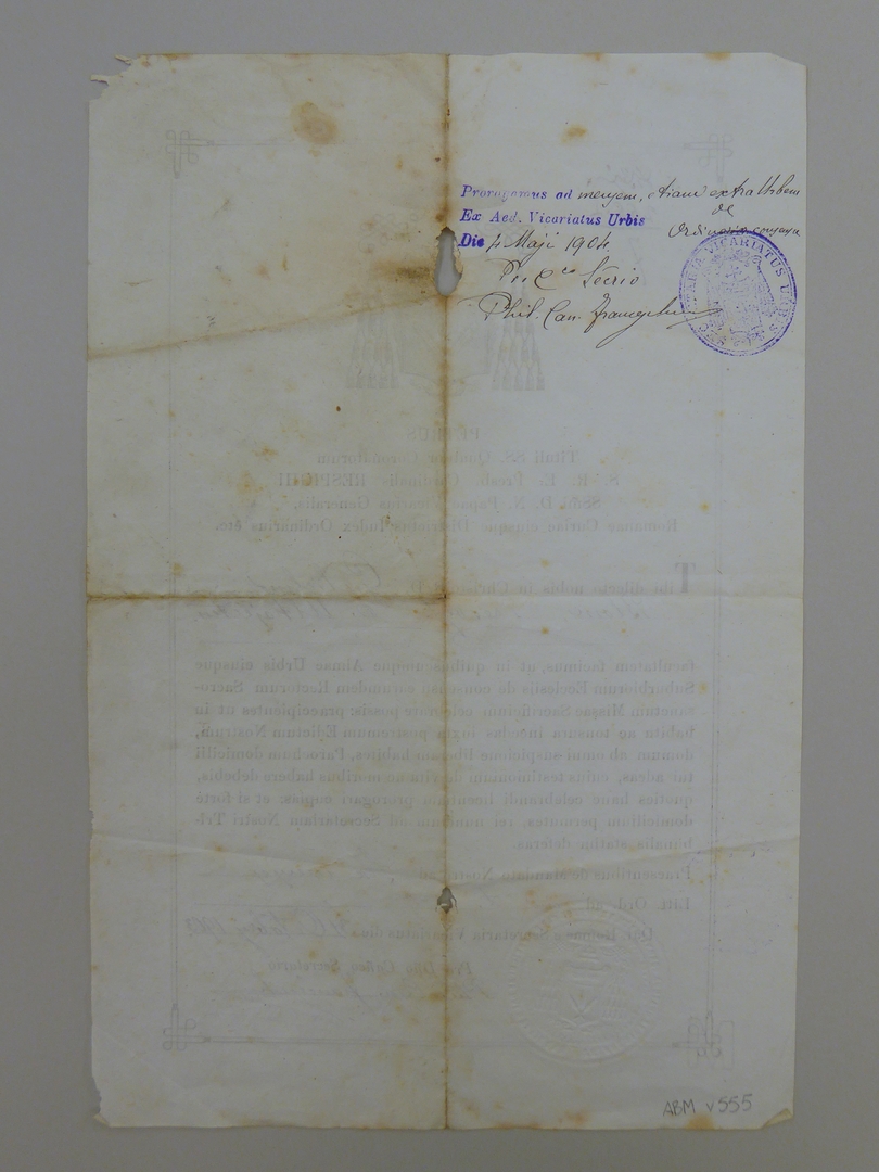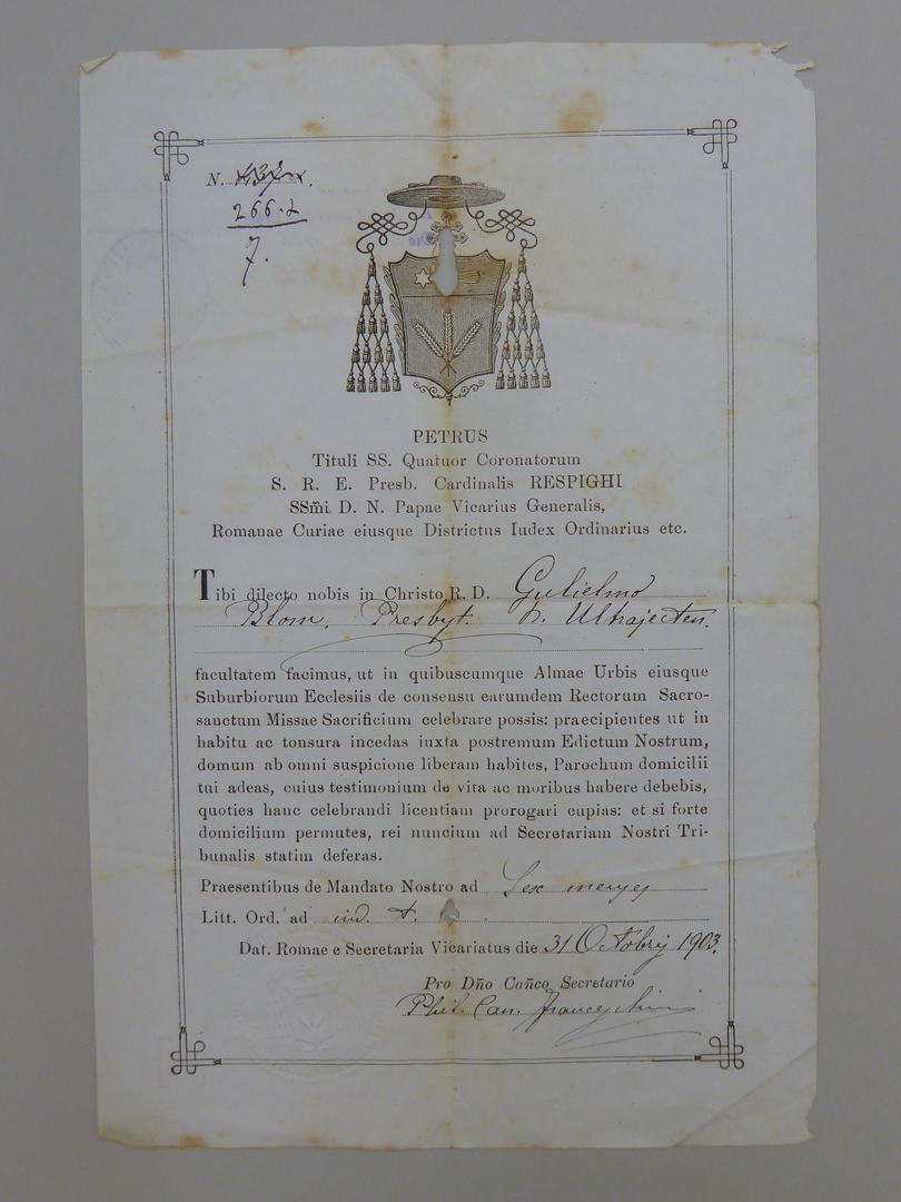 Celebret van W.F.H. Blom met betrekking tot de kerken van Rome