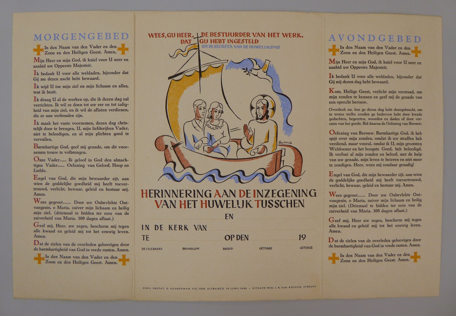 Huwelijksoorkonde met echtbaar in bootje en Christus aan het roer