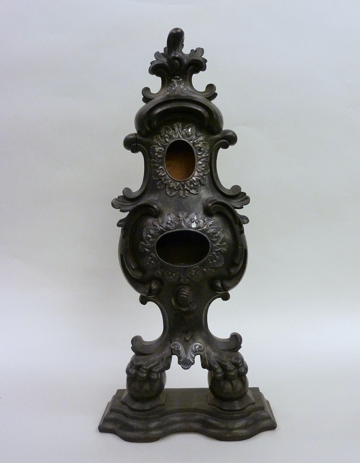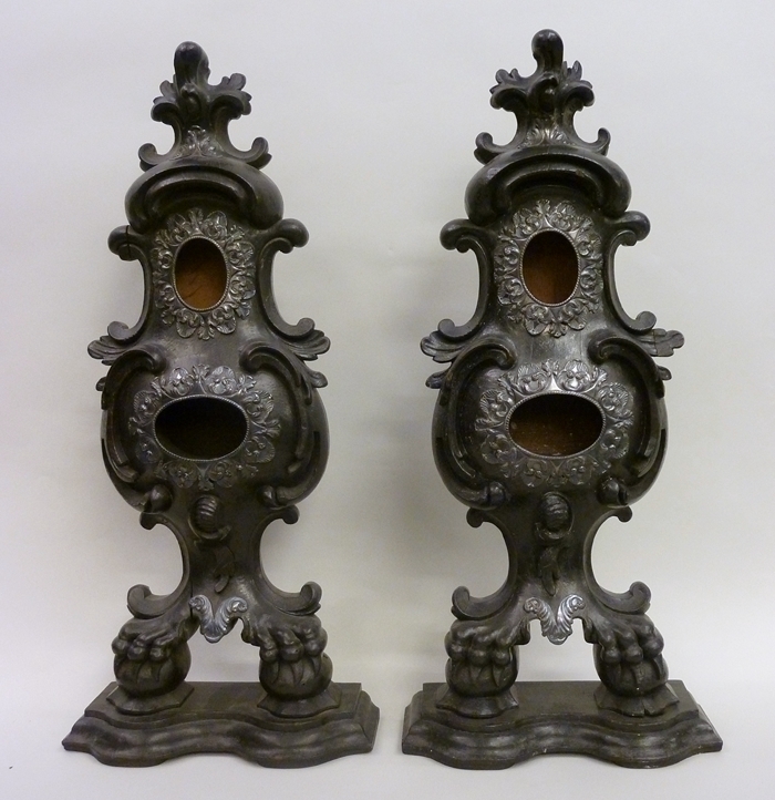 Reliekhouder van zwart geverfd hout met zilverbeslag