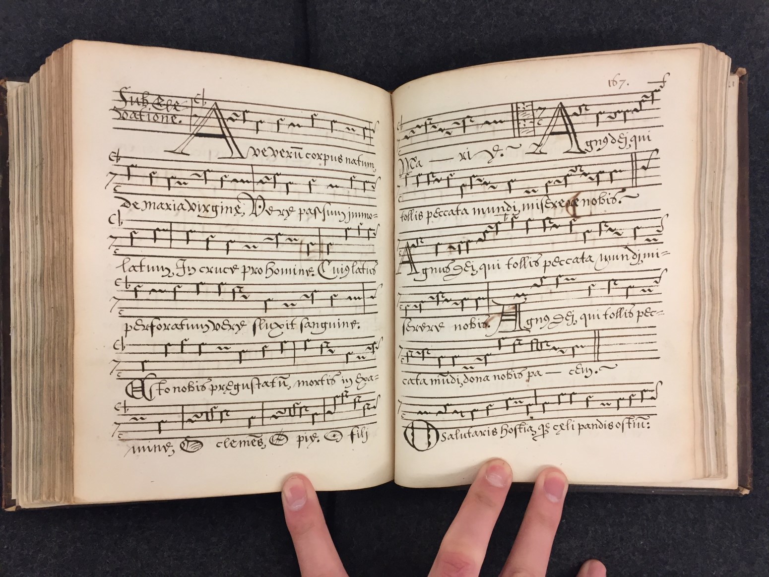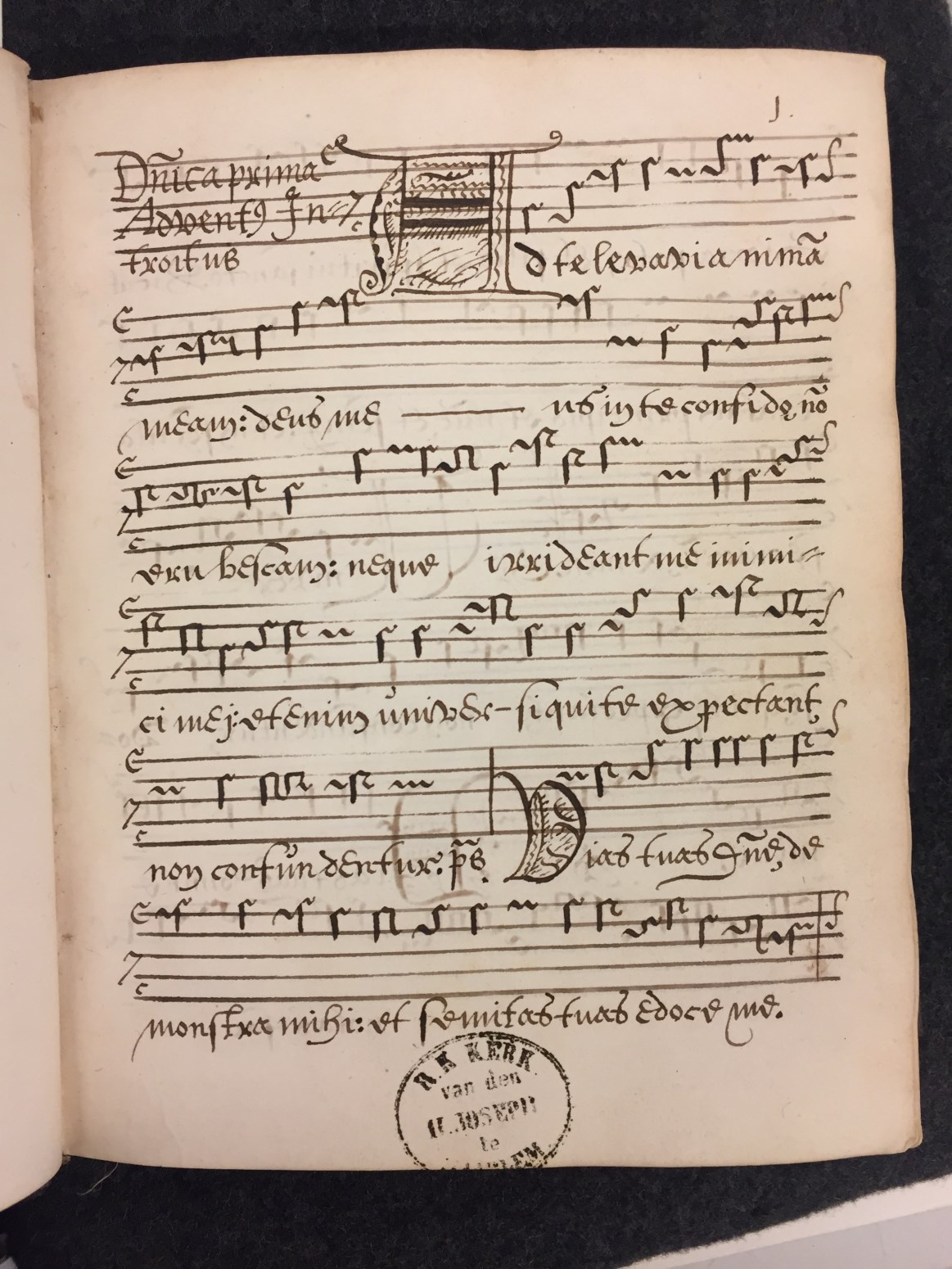 Een graduaal uit de 16de eeuw. Geschreven met zwarte pen (enkele), eenvoudige initialen in zwart. In originele band uit de tijd.