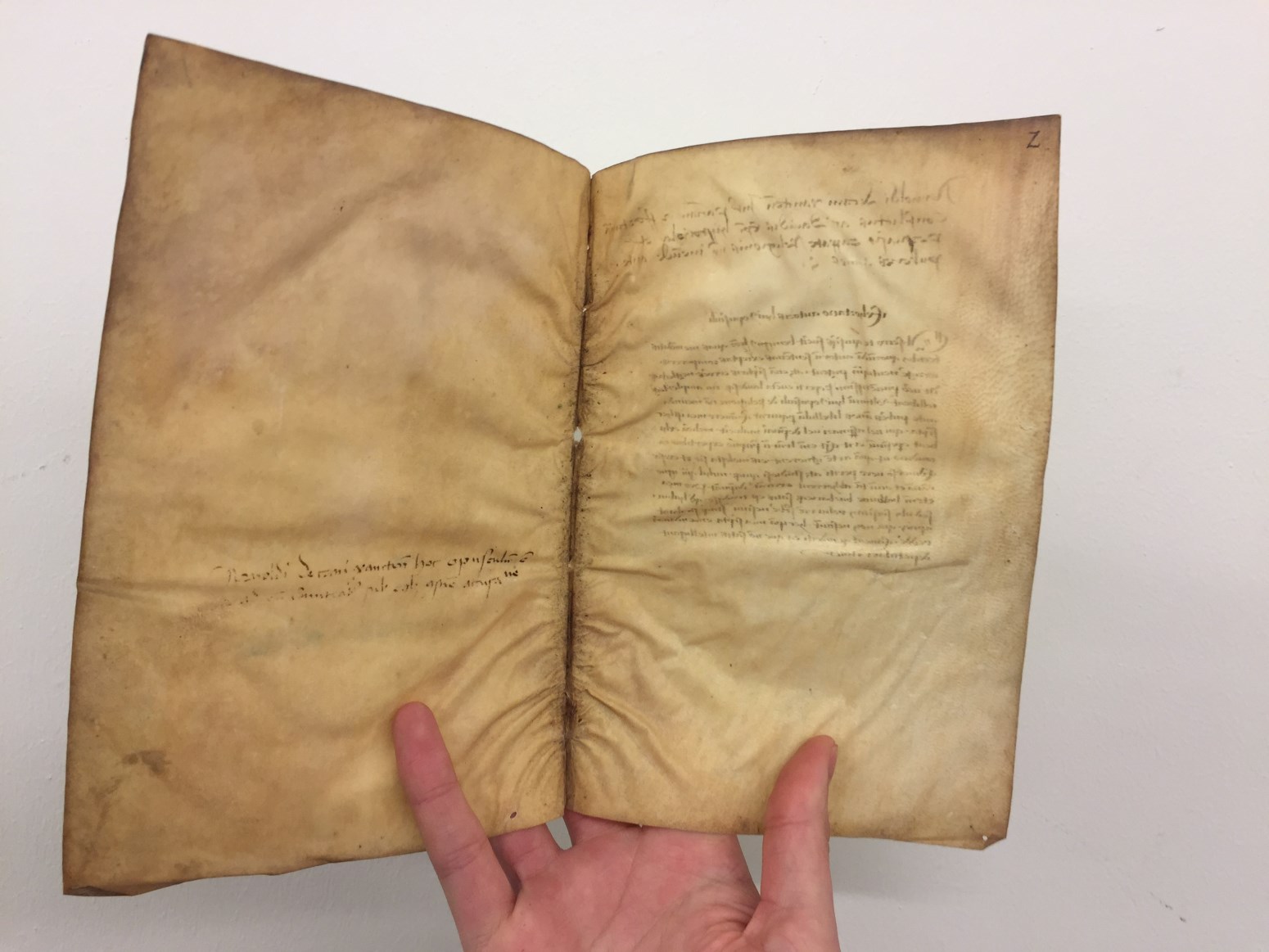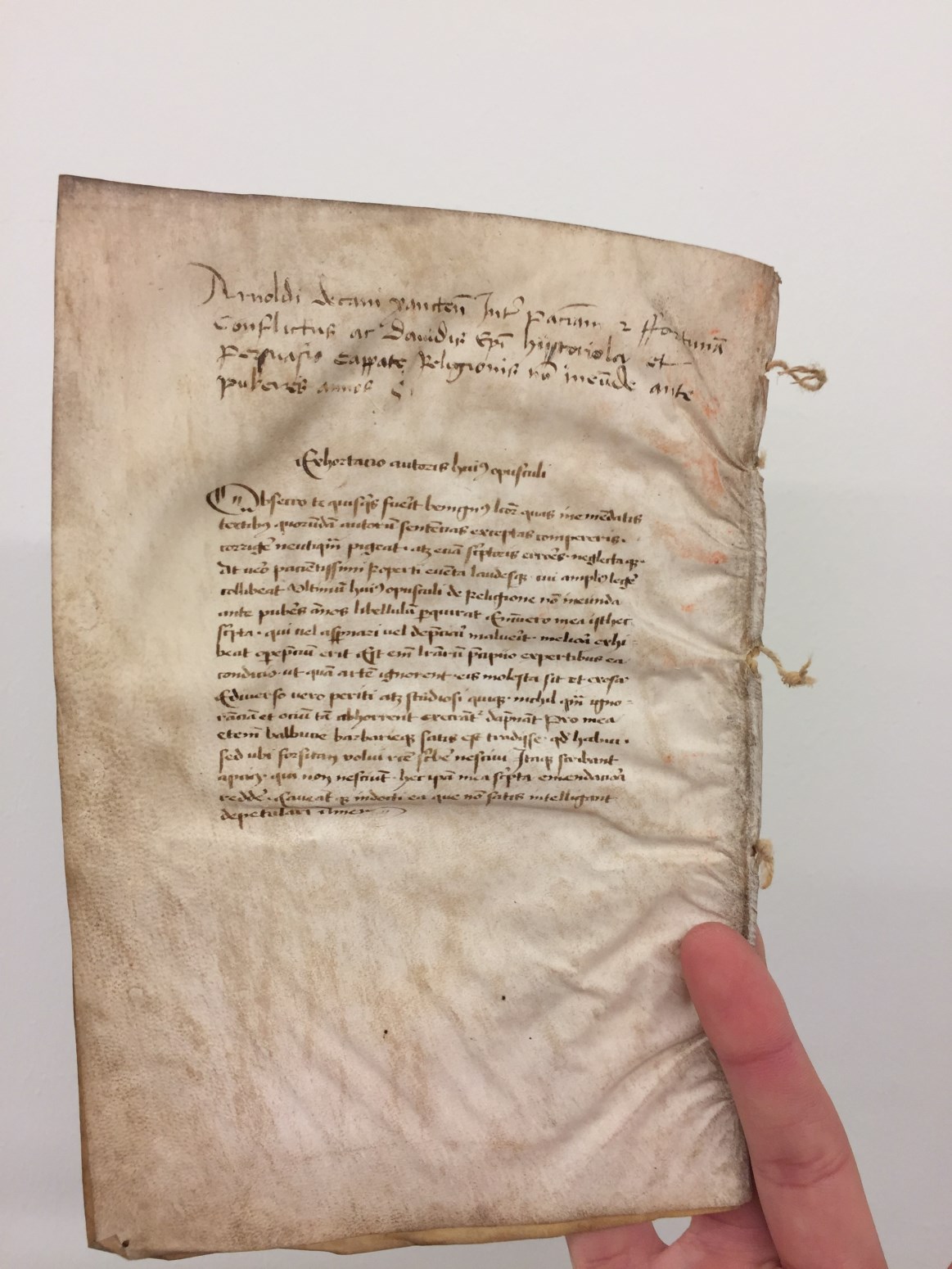Los blad in BMH SJ 94(2) van ene Arnold Heymerick uit Kleef (fl. 1452), hoogstwaarschijnlijk een kanunnik.