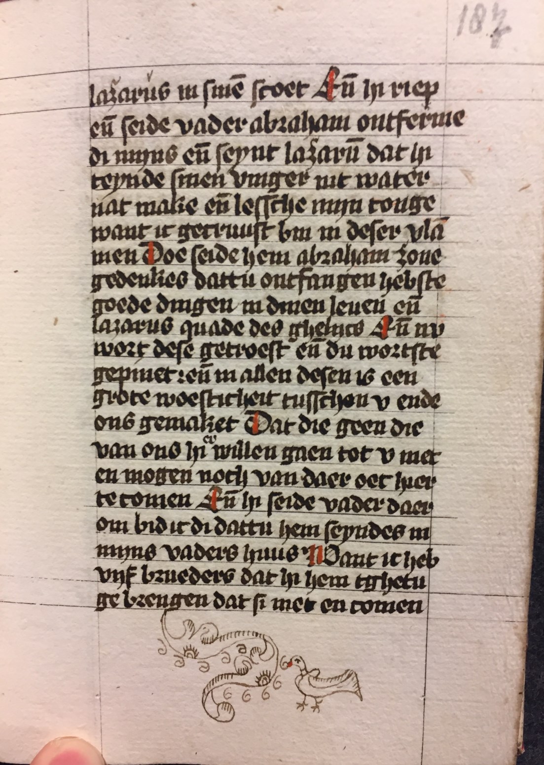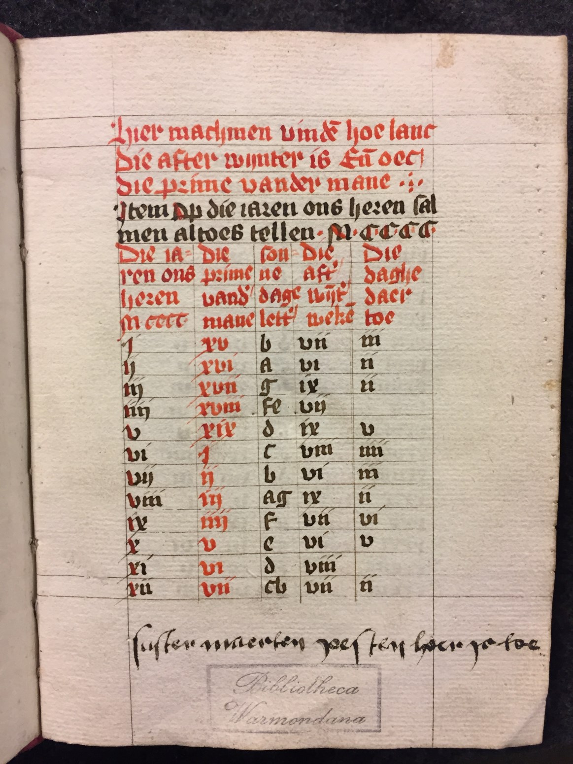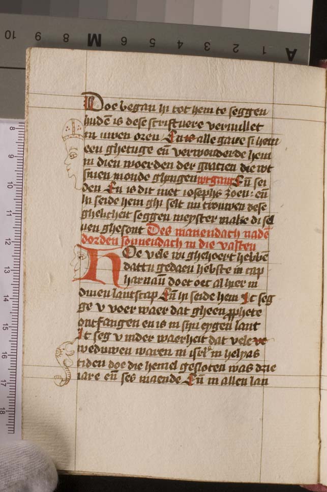 Handschrift met fragmenten van de Synoptische Evangeliën (Matteüs: incompleet, Lucas en het slot van Marcus) uit de Noordelijke-Nederlanden. Gumbert pleitte voor een datering in de tweede helft van de 15de eeuw. De tekst wordt vooraf gegaan door een kalender (f. 1r-18v), in het voetwit op het eerste blad vinden we de naam van zuster Maartje ...