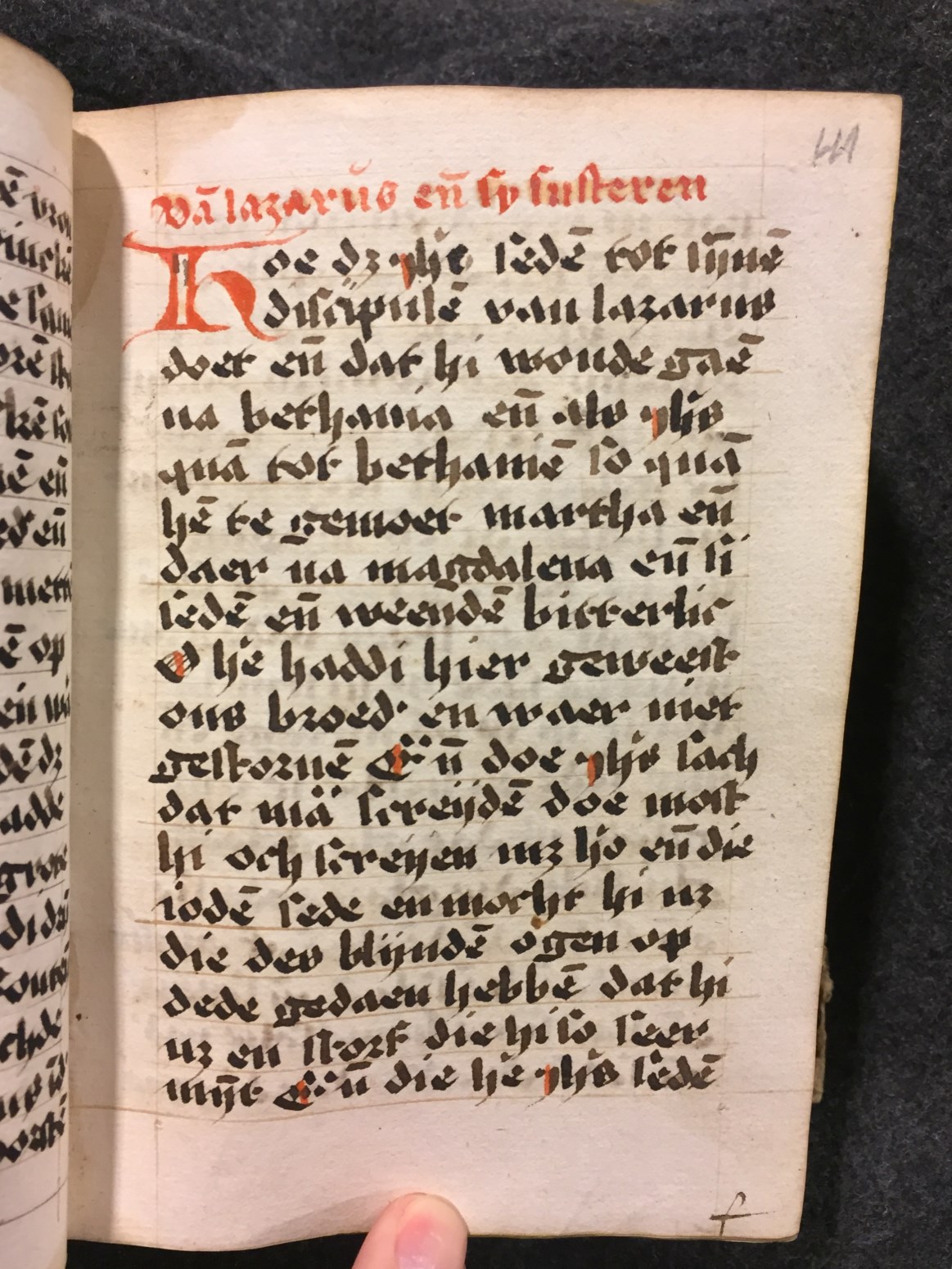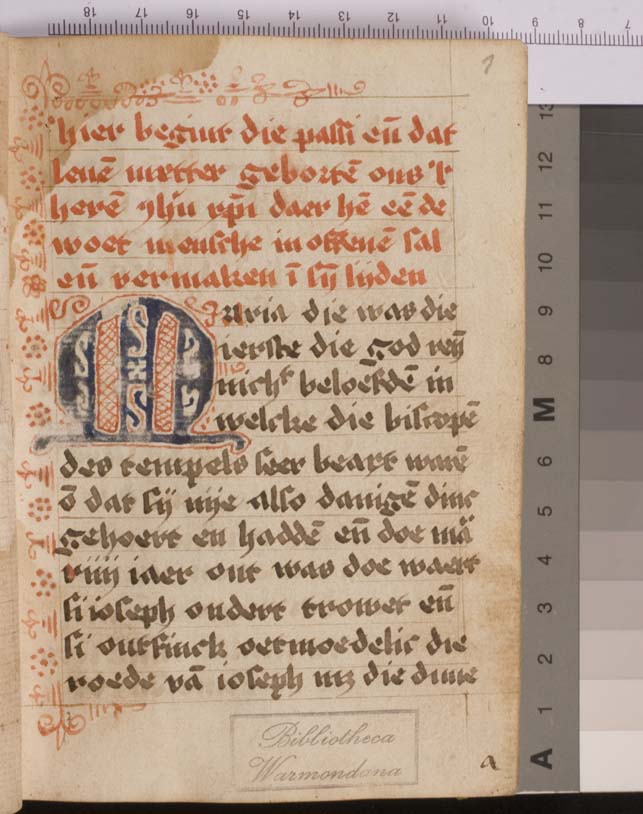 Een handschrift met het Leven en de Passie van Christus op papier (octavo formaat) gedateerd in de 16de eeuw (Nederlanden). Het 338 folia tellende boek, heeft enkele zeer eenvoudige penwerkinitialen in rood en is volgens Gumbert hoogstwaarschijnlijk geschreven door een vrouwelijke scribente (zie f. 338v) alsmede gerubriceerd door een vrouw (verlichster).