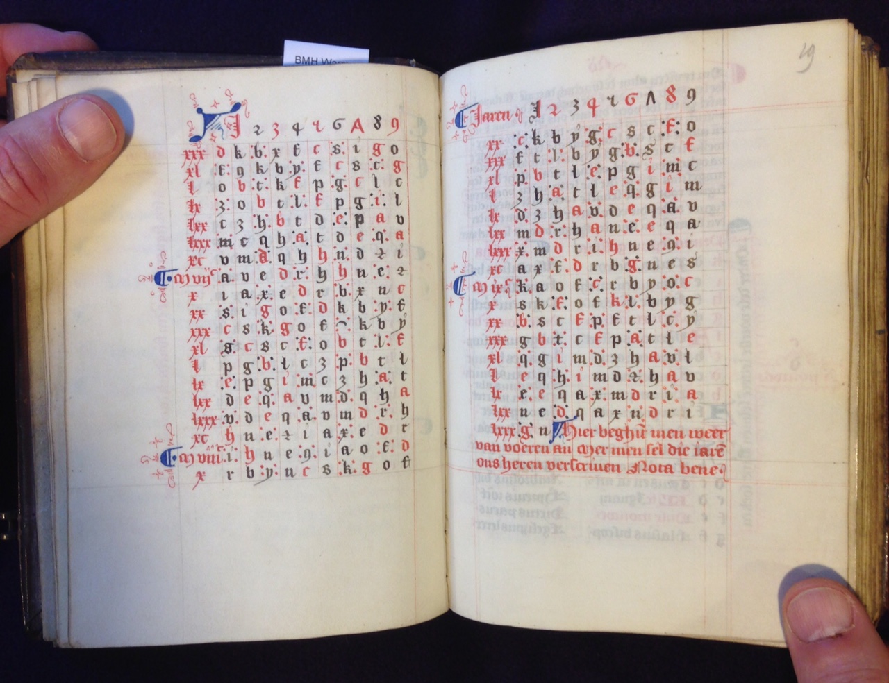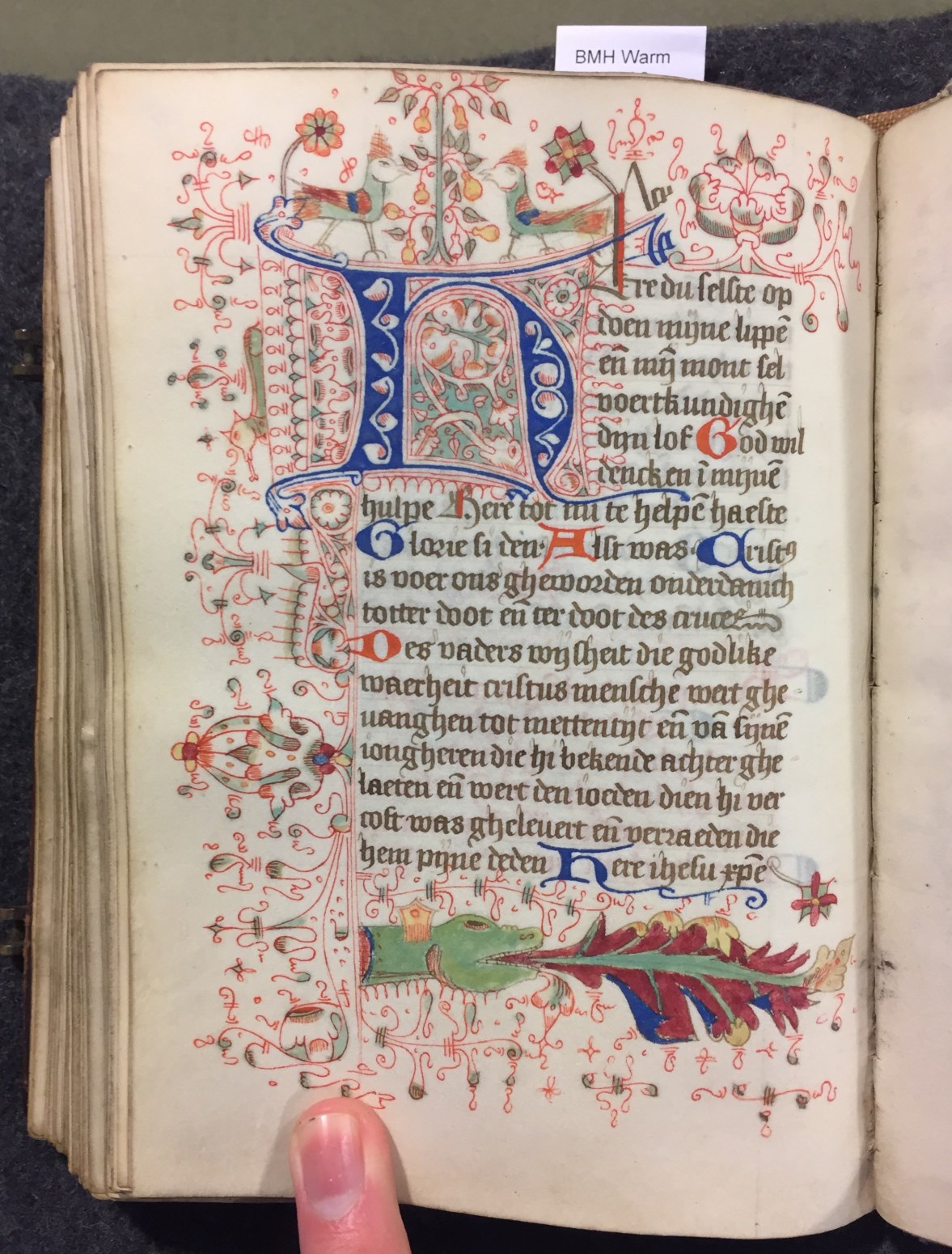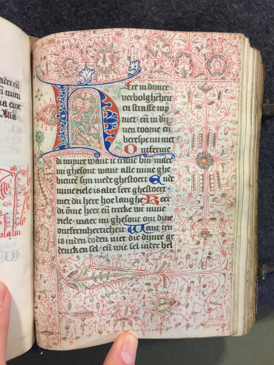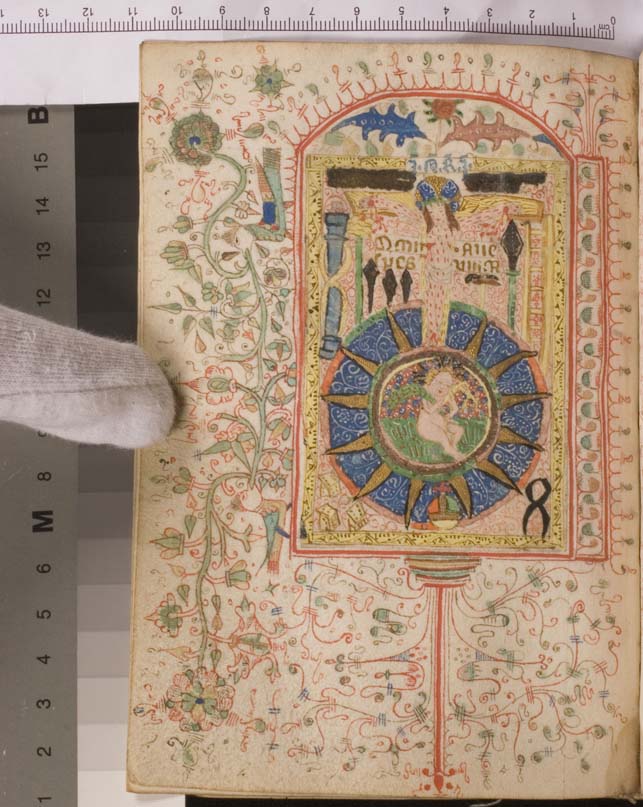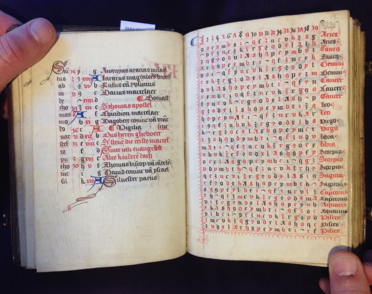 Een getijden- en gebedenboek hoogstwaarschijnlijk gemaakt in 1481 voor Geertruida Jansen (Gheertruud Jansdr.) uit Haarlem. Het is namelijk haar naam dat omgekeerd in spiegelbeeld op f. 124v staat in de initiaal D. Het handschrift telt 157 folia, heeft enkele fraai versierde pagina's met initialen en één grove miniatuur (f. 88v) van een gekruisigde Christus met ...