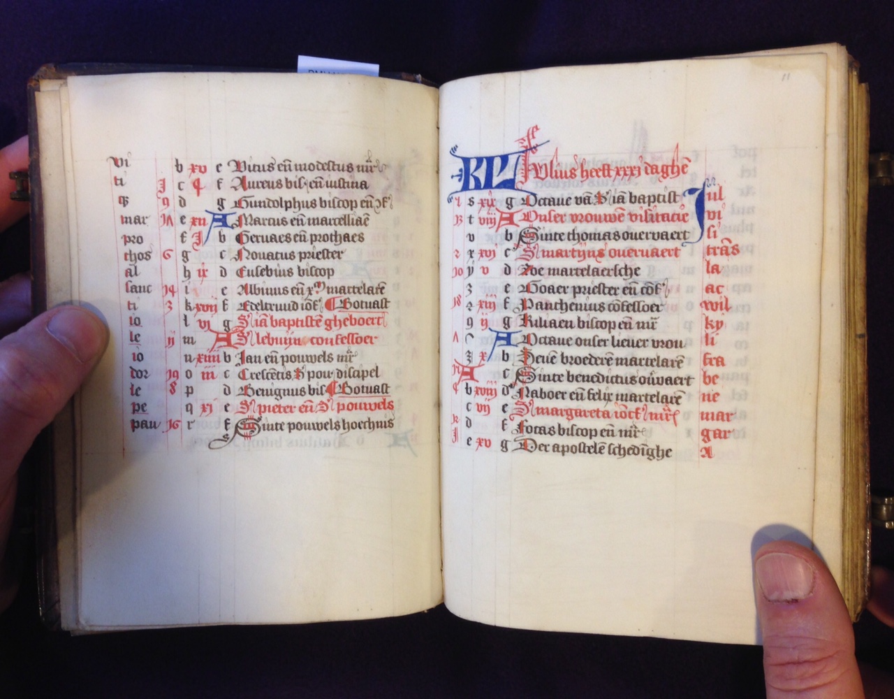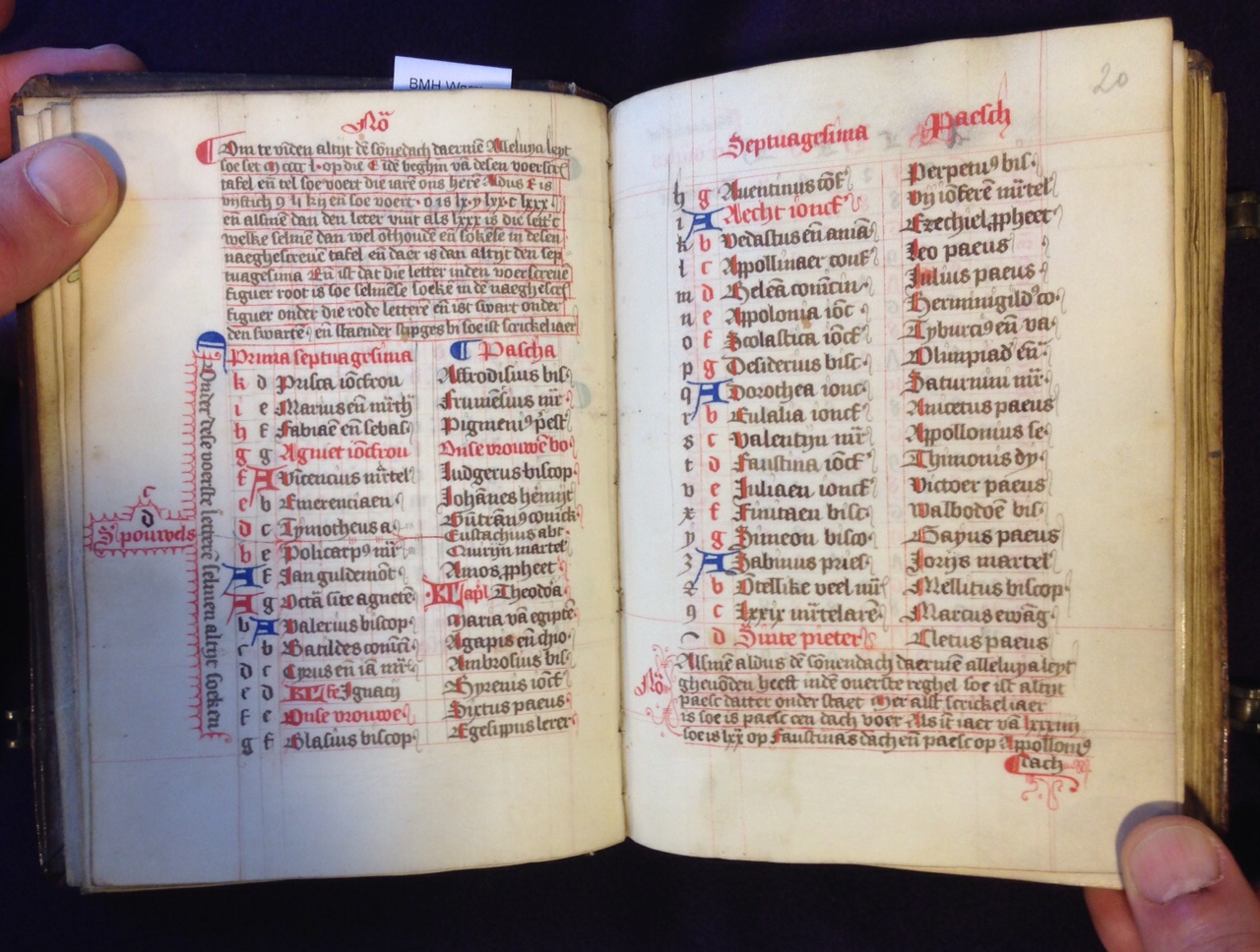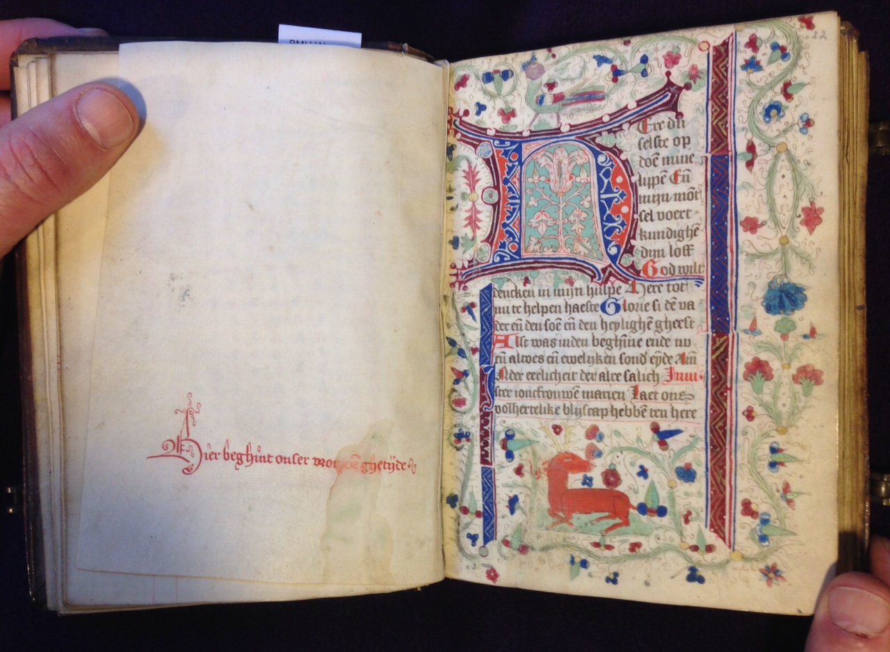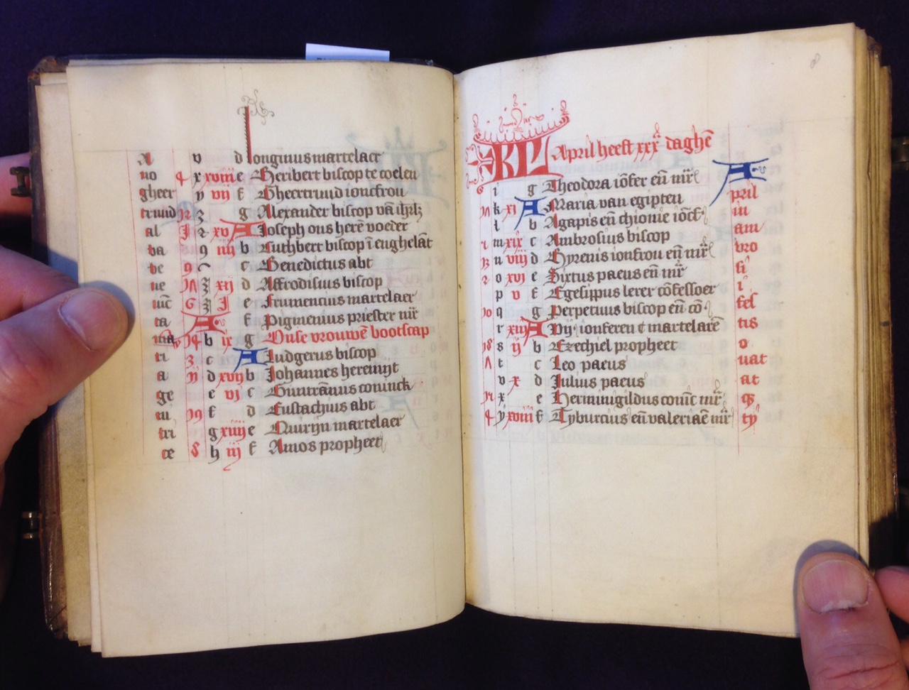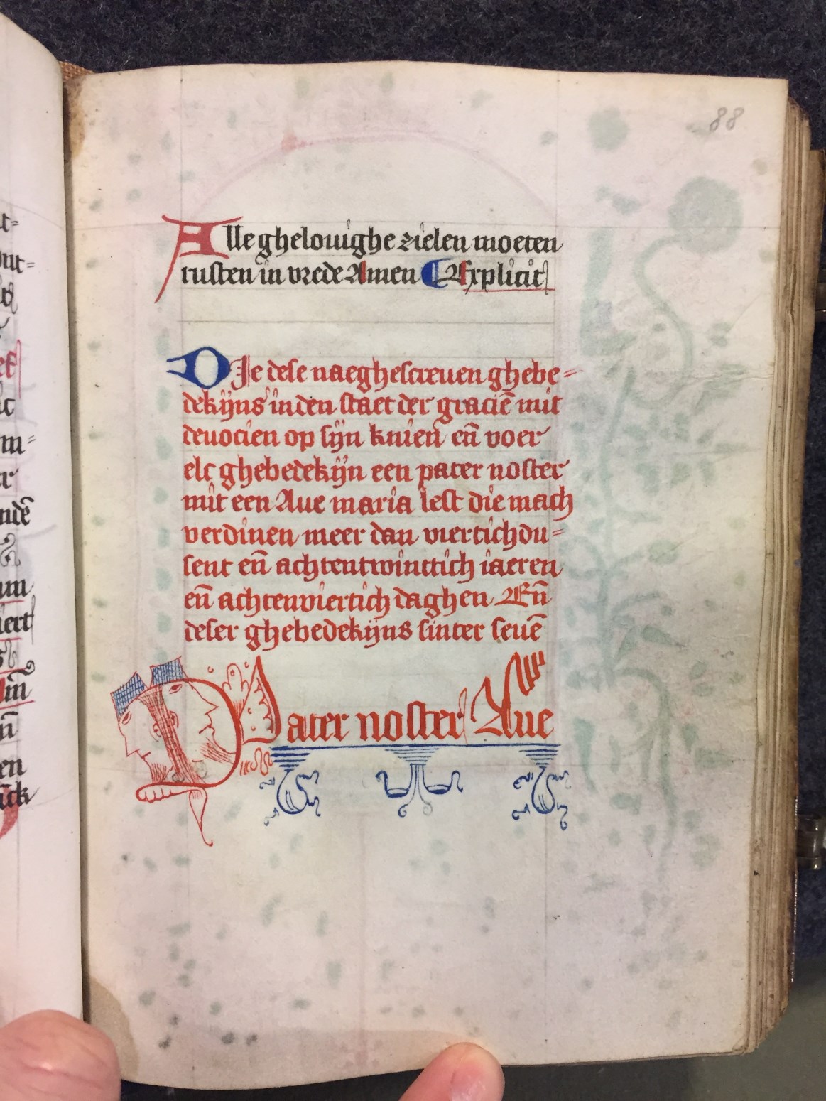 Een getijden- en gebedenboek hoogstwaarschijnlijk gemaakt in 1481 voor Geertruida Jansen (Gheertruud Jansdr.) uit Haarlem. Het is namelijk haar naam dat omgekeerd in spiegelbeeld op f. 124v staat in de initiaal D. Het handschrift telt 157 folia, heeft enkele fraai versierde pagina's met initialen en één grove miniatuur (f. 88v) van een gekruisigde Christus met ...