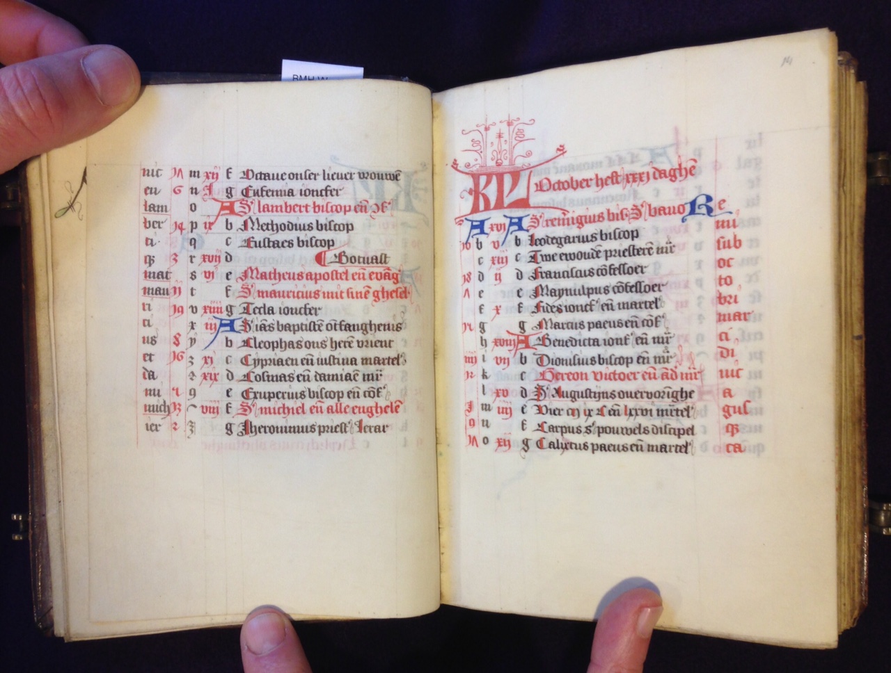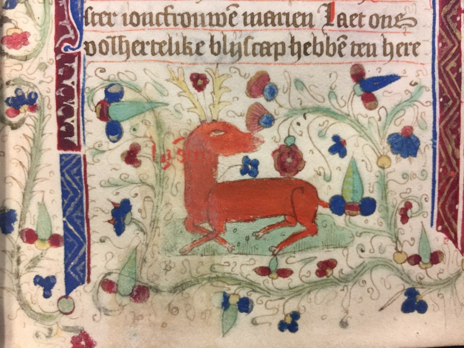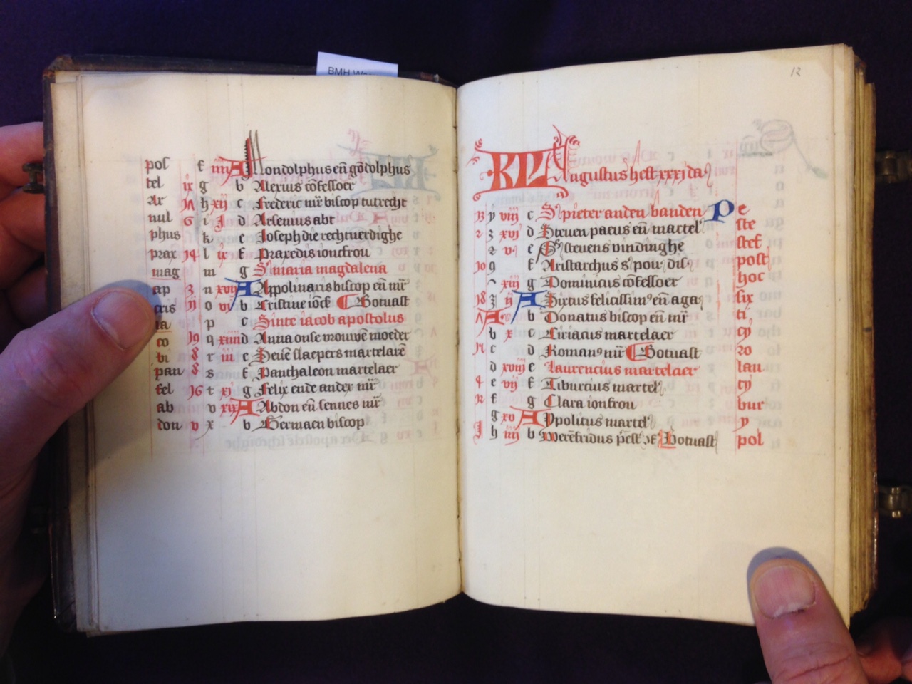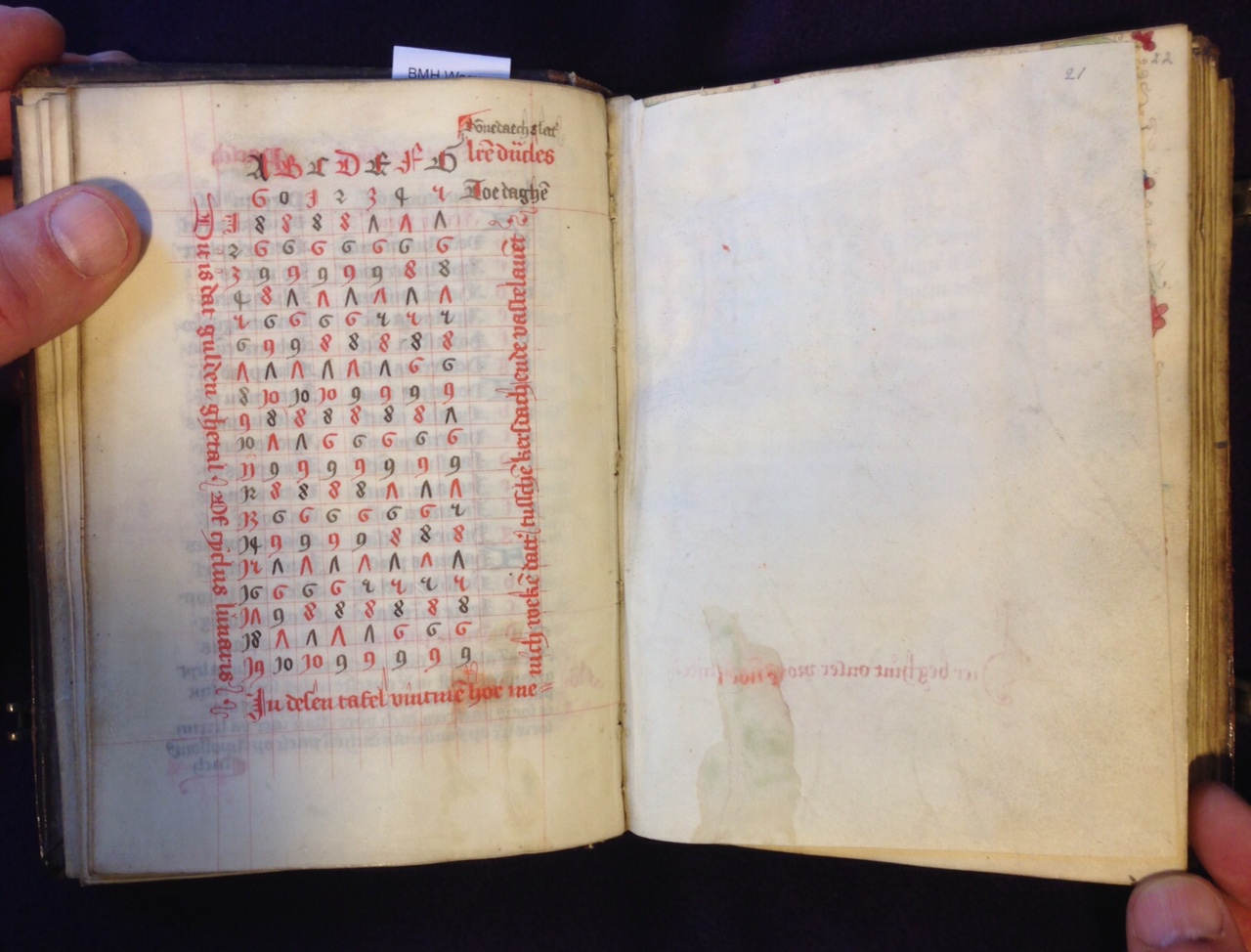 Een getijden- en gebedenboek hoogstwaarschijnlijk gemaakt in 1481 voor Geertruida Jansen (Gheertruud Jansdr.) uit Haarlem. Het is namelijk haar naam dat omgekeerd in spiegelbeeld op f. 124v staat in de initiaal D. Het handschrift telt 157 folia, heeft enkele fraai versierde pagina's met initialen en één grove miniatuur (f. 88v) van een gekruisigde Christus met ...