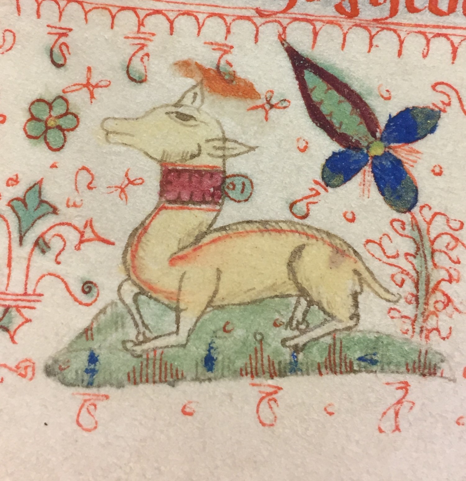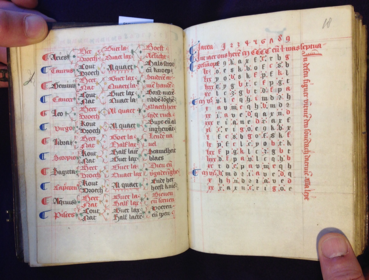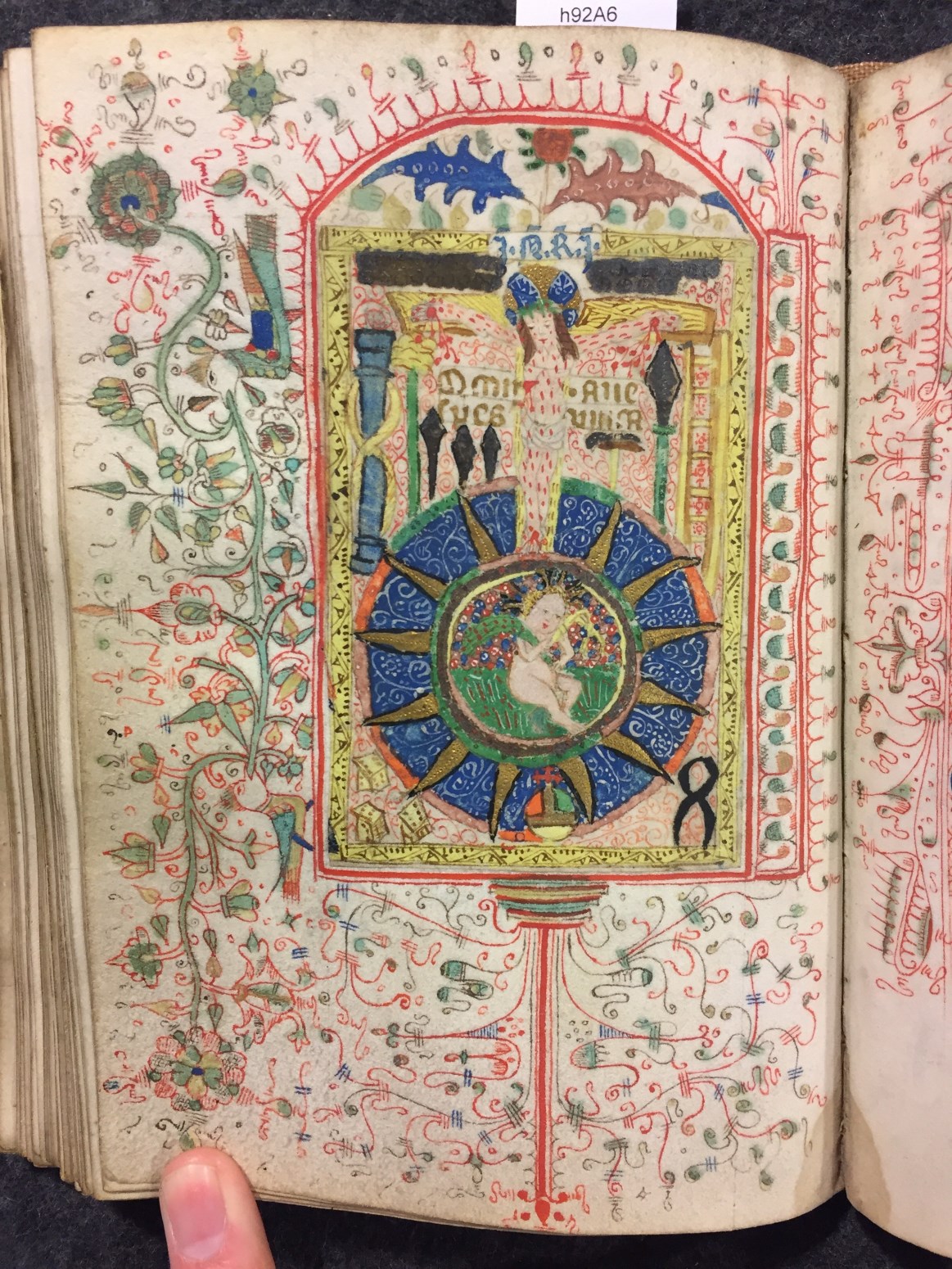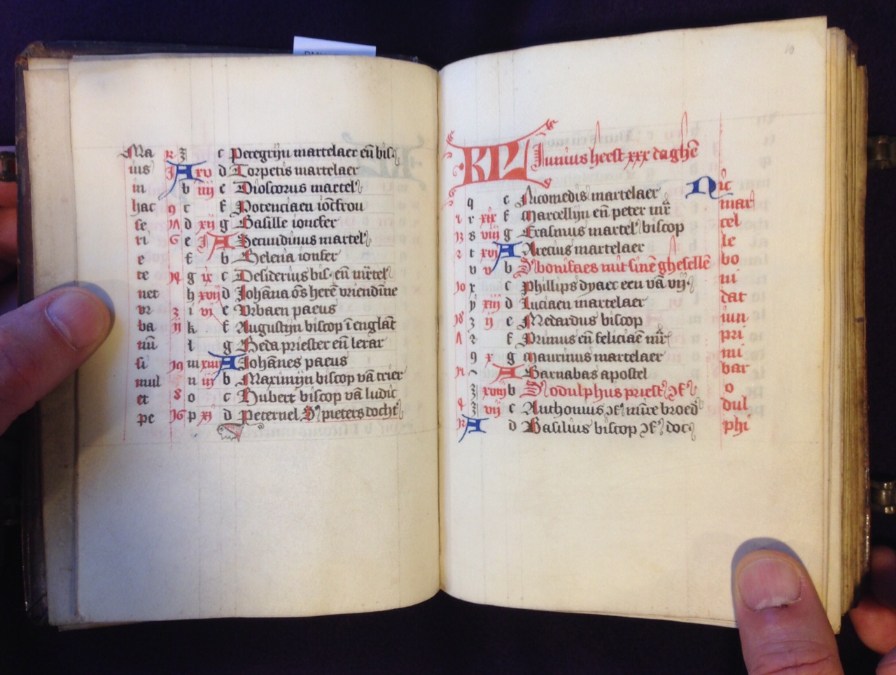 Een getijden- en gebedenboek hoogstwaarschijnlijk gemaakt in 1481 voor Geertruida Jansen (Gheertruud Jansdr.) uit Haarlem. Het is namelijk haar naam dat omgekeerd in spiegelbeeld op f. 124v staat in de initiaal D. Het handschrift telt 157 folia, heeft enkele fraai versierde pagina's met initialen en één grove miniatuur (f. 88v) van een gekruisigde Christus met ...