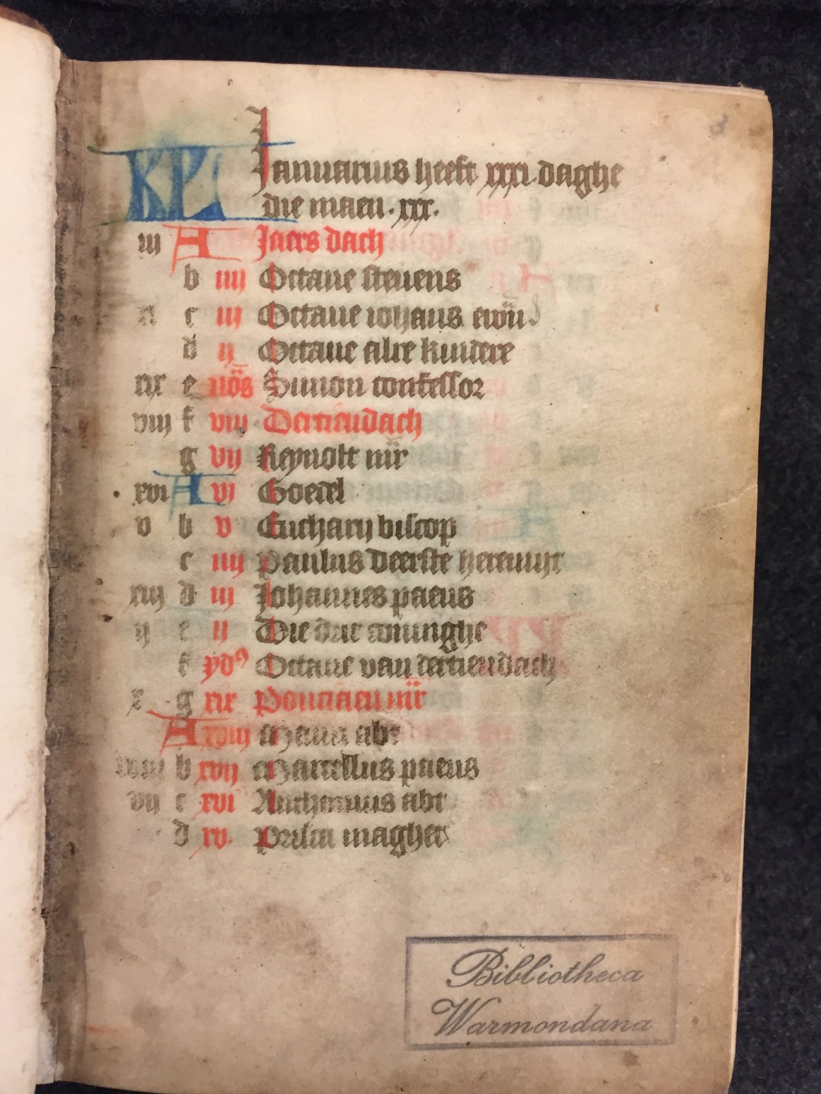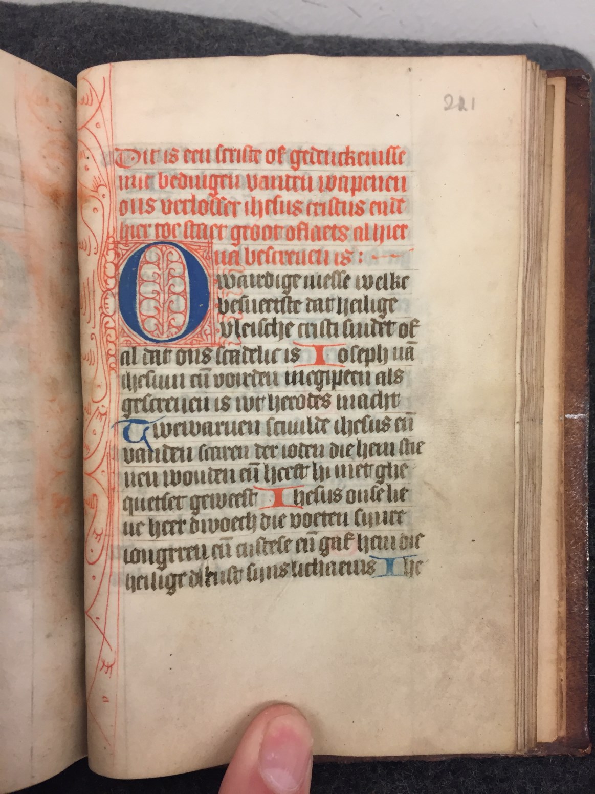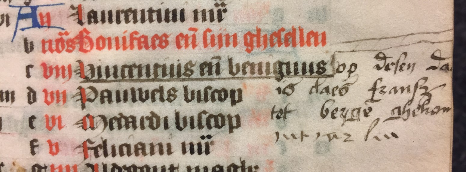 Dit getijden- vigilies en gebedenboek is waarschijnlijk gemaakt in Zuid-Holland rond het midden van de 15de eeuw. Toevoegingen van eigenaren komen zowel in de kalender als in de marges voor. Zo is er Klaas Frans van Beijersbergen (Claes Fransz van Bergen, f. 7r). Telg uit een niet onbemiddeld geslacht uit Wassenaar. En Anna Gerrits (Anna ...