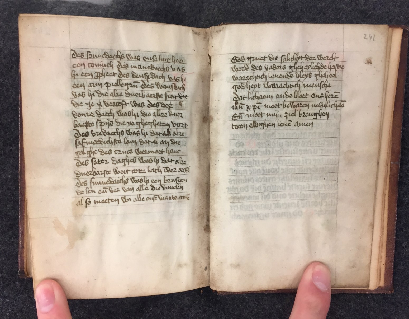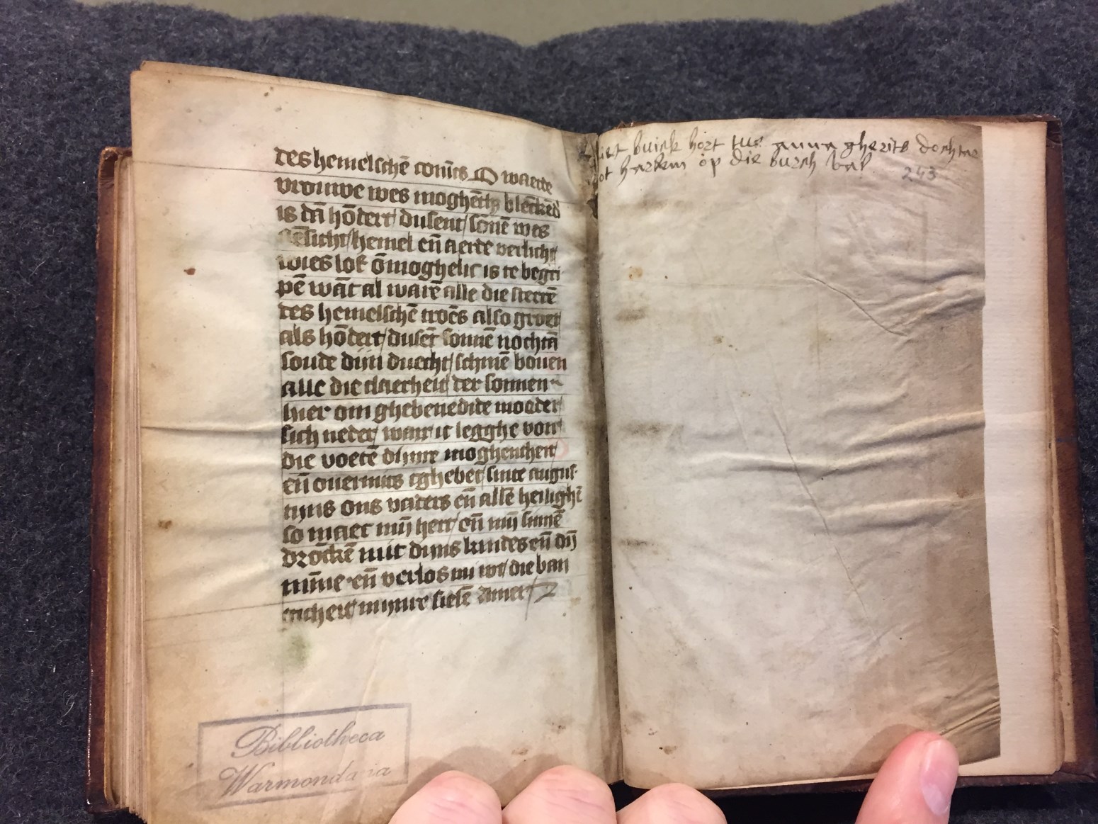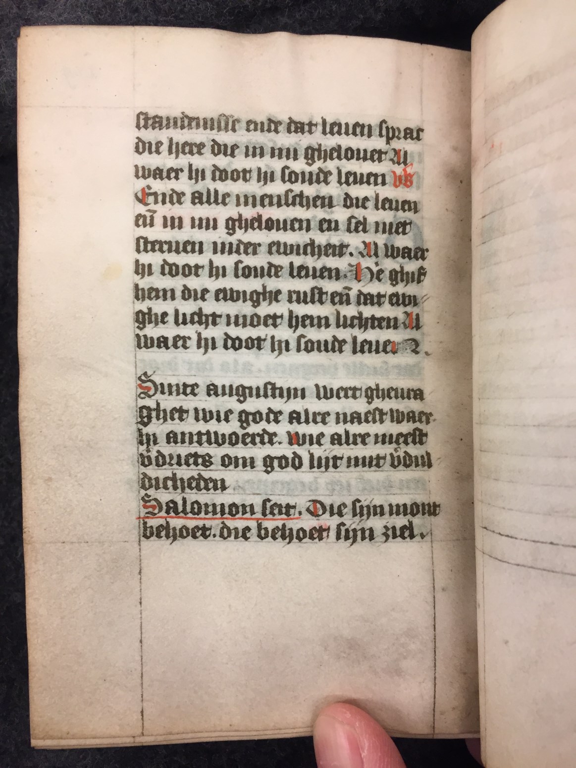 Dit getijden- vigilies en gebedenboek is waarschijnlijk gemaakt in Zuid-Holland rond het midden van de 15de eeuw. Toevoegingen van eigenaren komen zowel in de kalender als in de marges voor. Zo is er Klaas Frans van Beijersbergen (Claes Fransz van Bergen, f. 7r). Telg uit een niet onbemiddeld geslacht uit Wassenaar. En Anna Gerrits (Anna ...