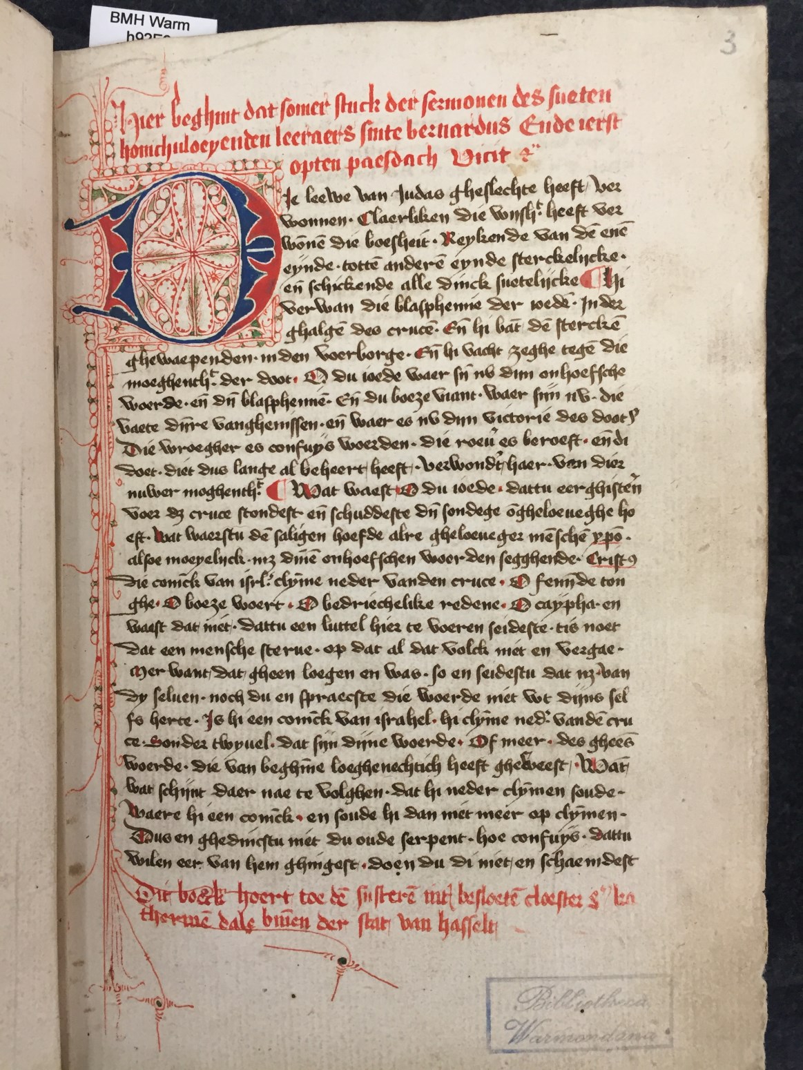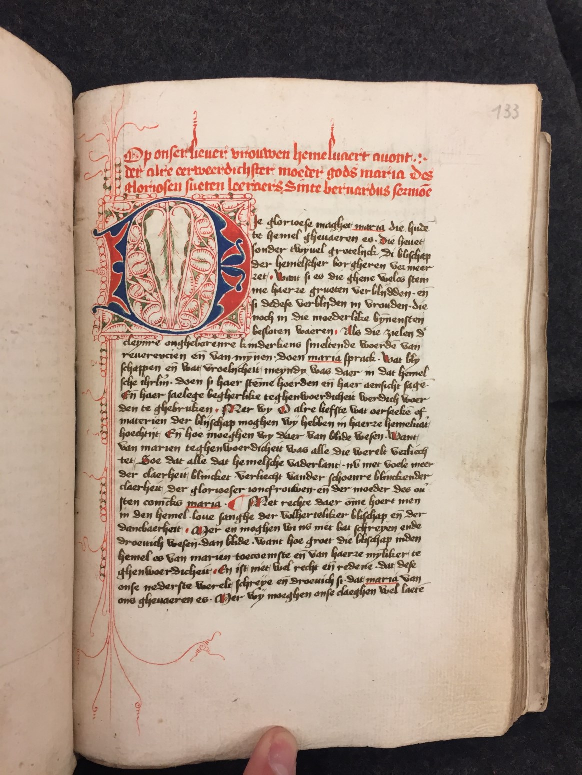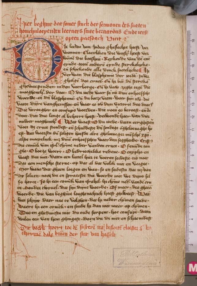 De sermoenen van Bernardus van Clairvaux in dit handschrift zijn de liturgische preken van het zomerstuk. Deze sermoenen van het zomerstuk zijn waarschijnlijk in twee delen vertaald: eerst het gedeelte van Pasen tot en met het feest van Maria Magdalena, daarna de preken van Maria-ten-Hemelopneming tot het einde van het liturgisch jaar. Dit handschrift bestaat ...