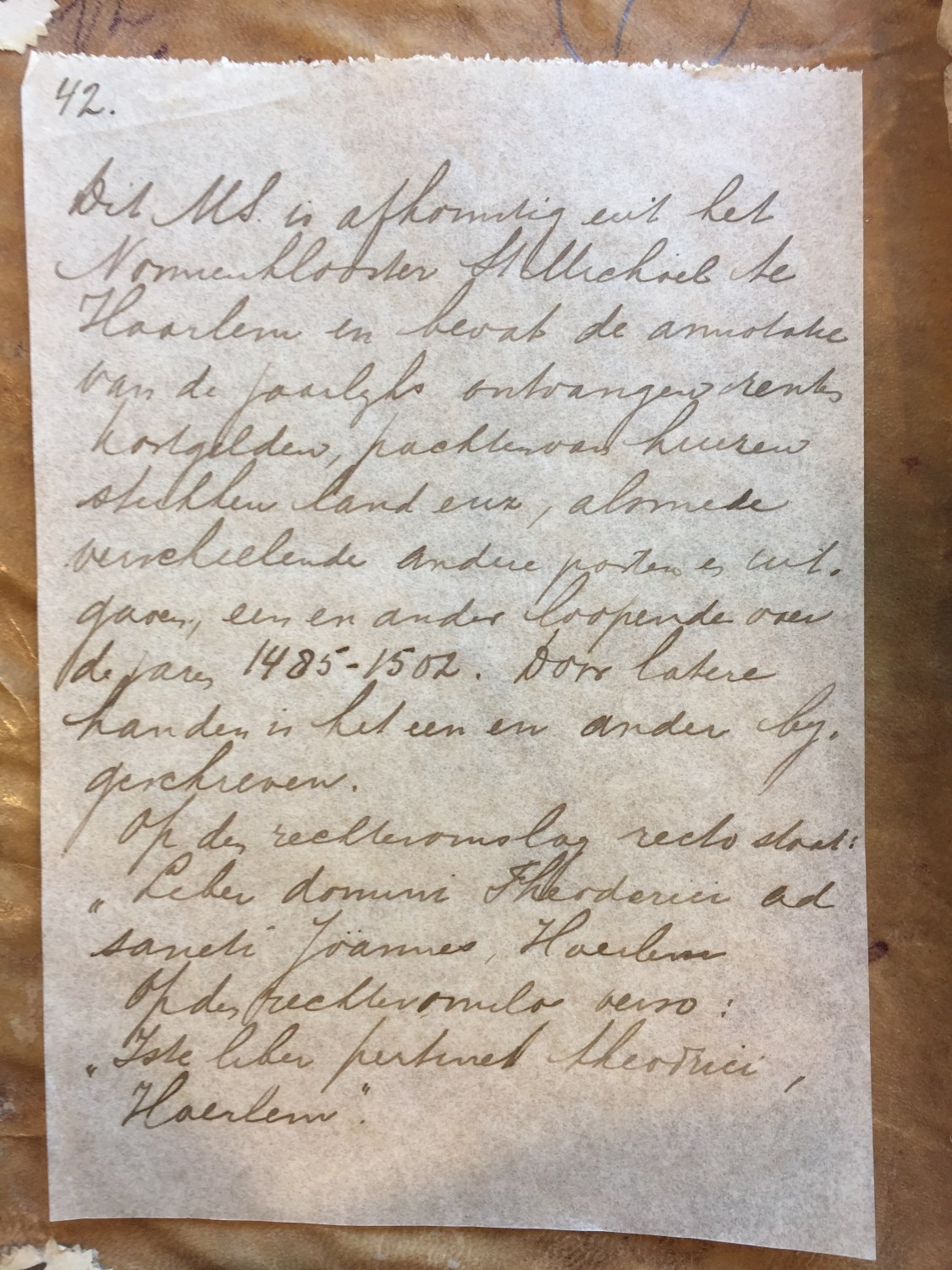 Ligger van renten, kostgelden, pachten en huren etc. van het Michaelsklooster te Haarlem [1485-1502]