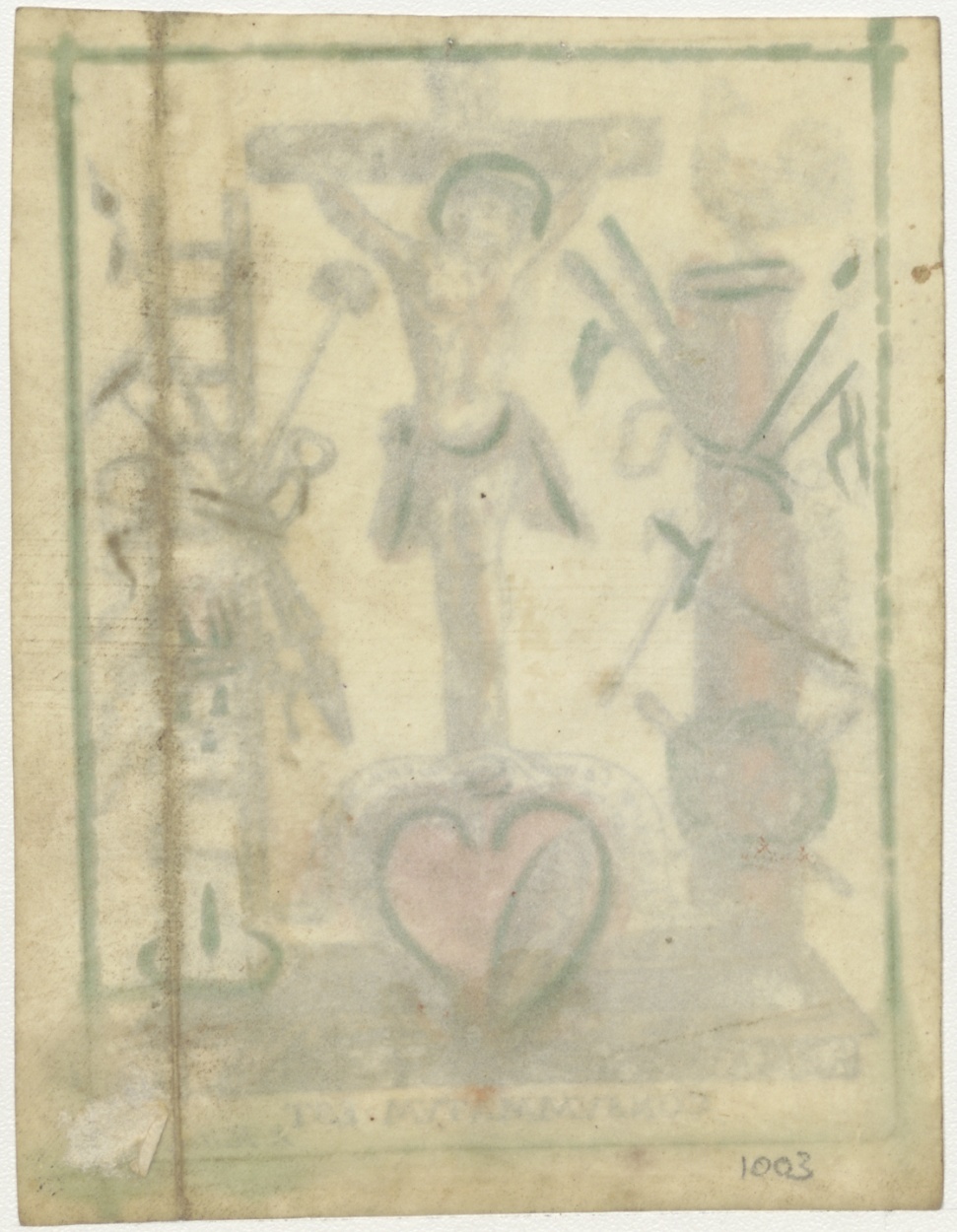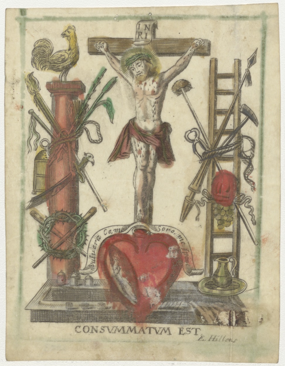 Gekruisigde Christus met martelwerktuigen, ingekleurd