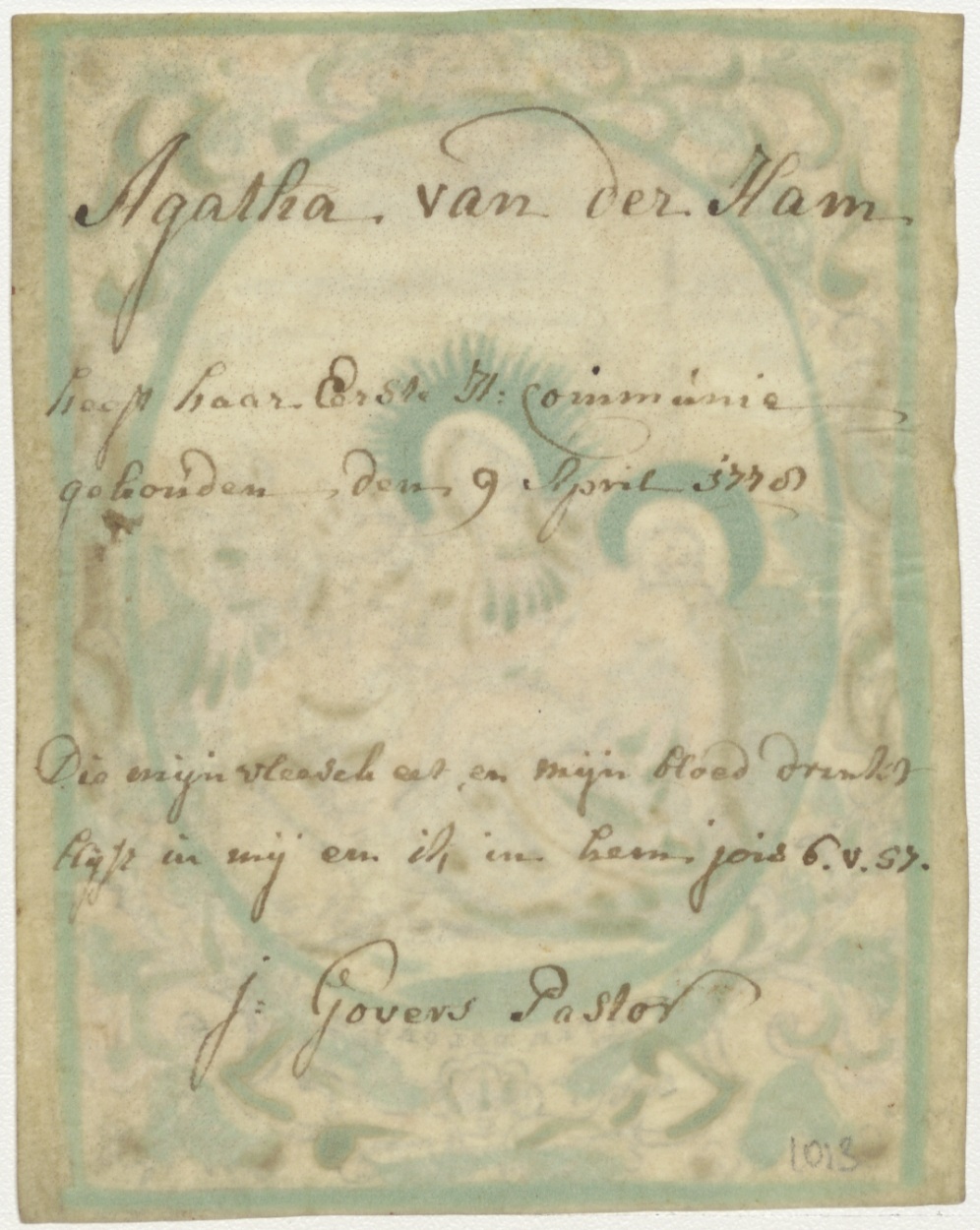 Maria Mater Dolorosa, piëta, ingekleurd, kz. H. Communie Van der Ham;1778;pastor J. Govers;