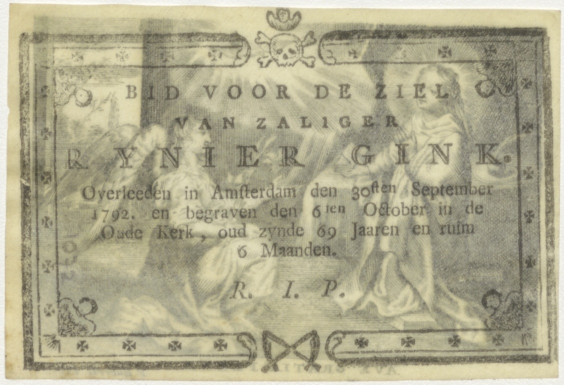 Annunciatie, Maria boodschap, kz. Bid voor ziel Gink (+1792);Amsterdam;