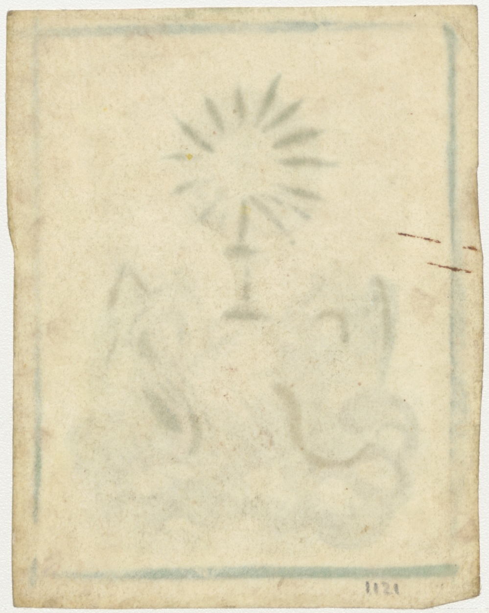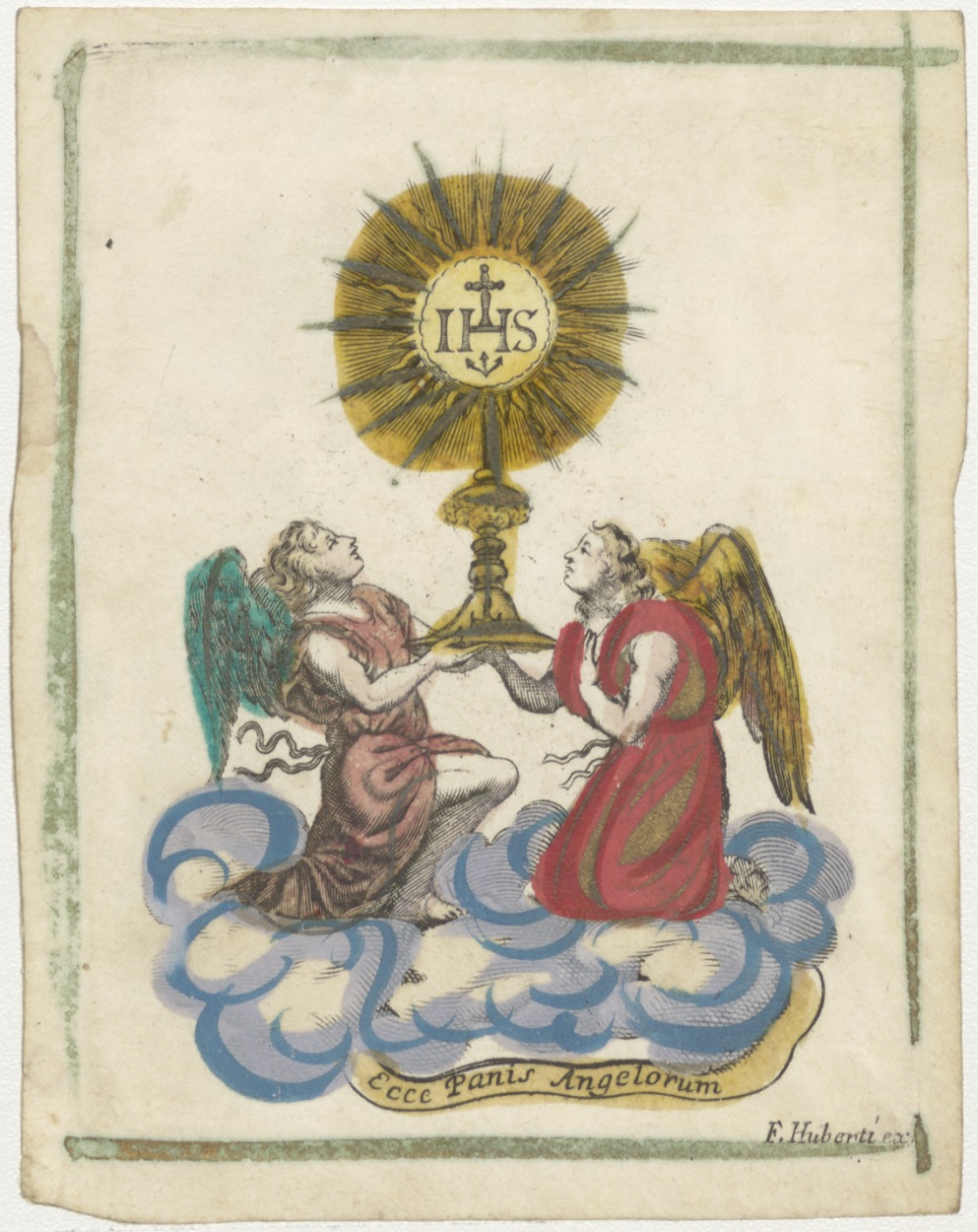 Aanbidding van H. Sacrament in monstrans, ingekleurd