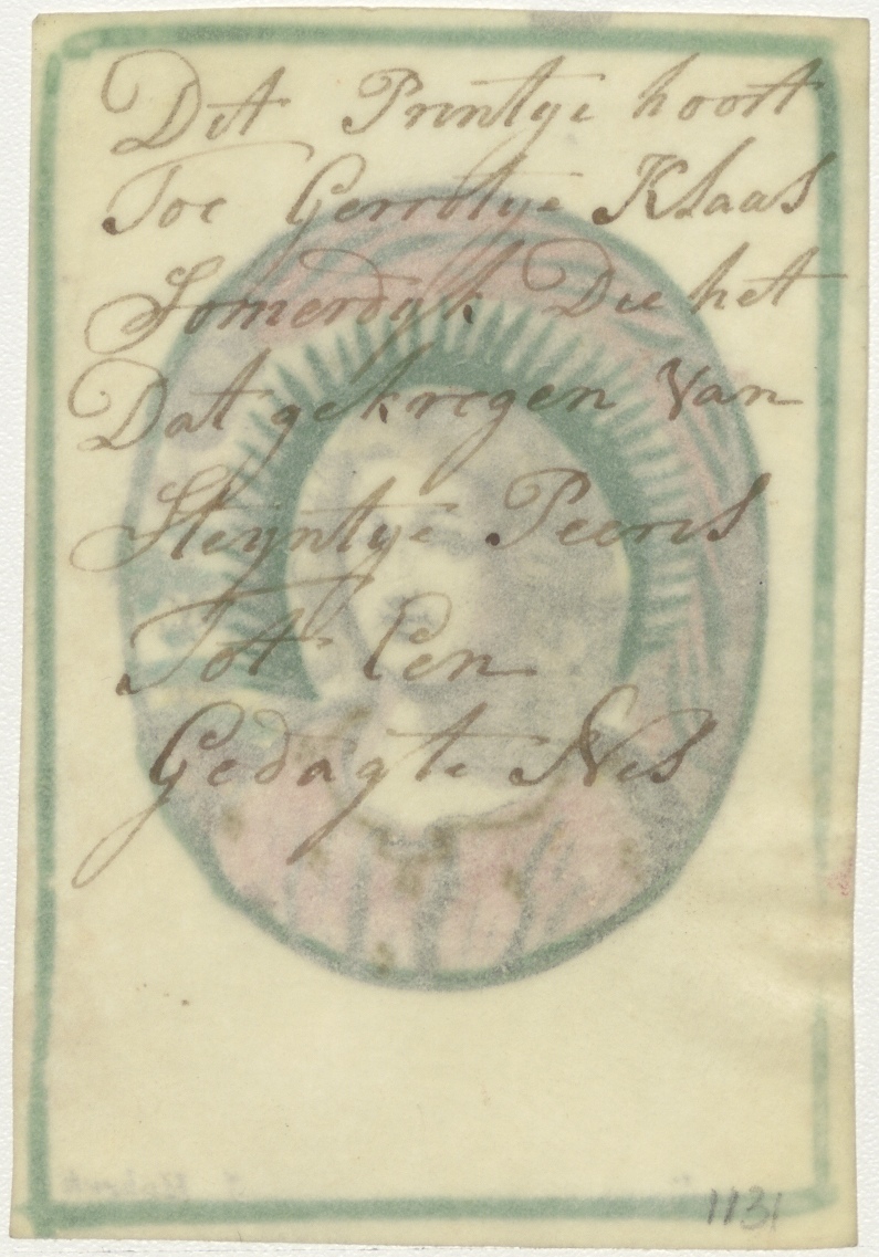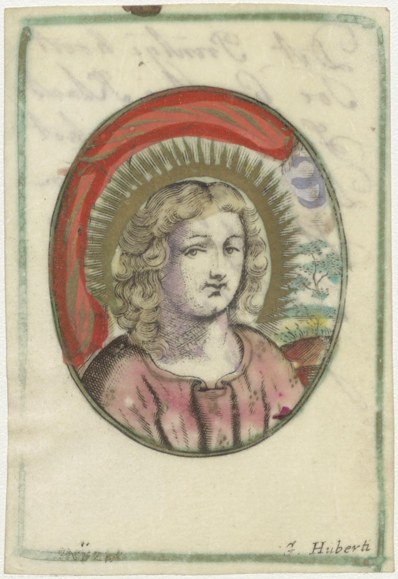 Christushoofd als jongeling(?), ingekleurd, kz. Ter gedachtenis van Somerdijk aan Paens;