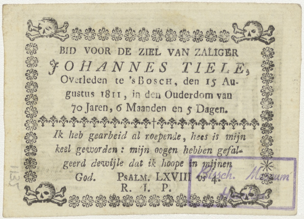 H. Familie bij bron, kz. Bid voor ziel Tiele (+1811);Den Bosch;