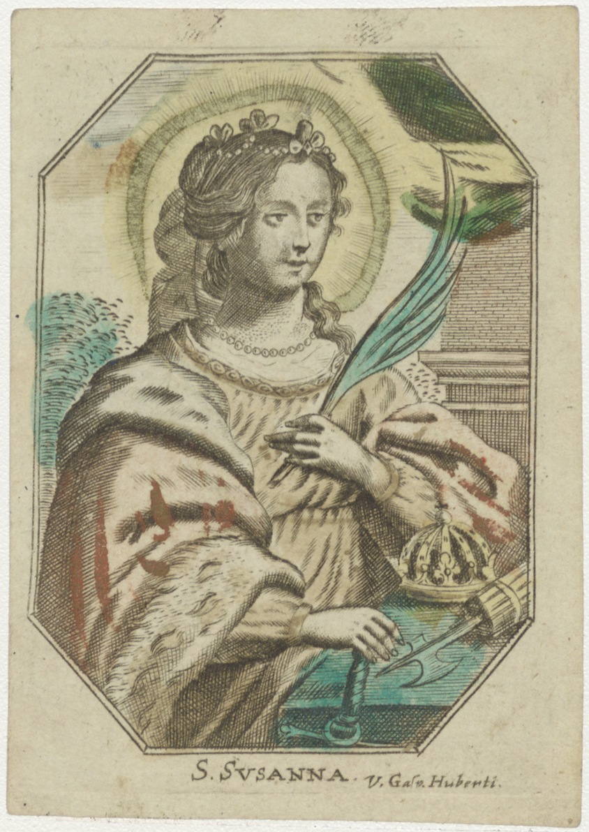 H. Susanna, ingekleurd, kz. Beloning Hooymans;van kapelaan Vliegmans te Voorschoten;