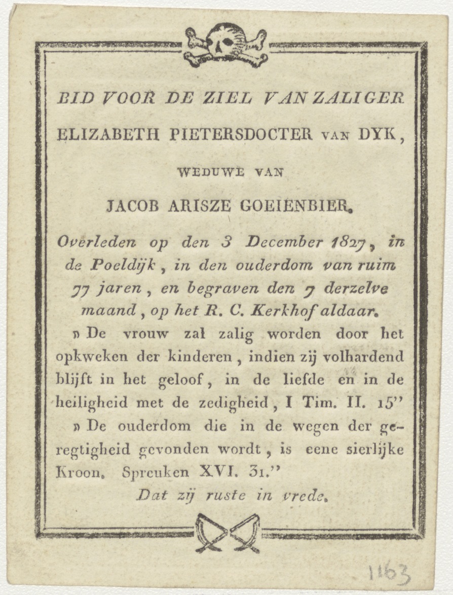 H. Ursula, kz. Bid voor ziel Pietersdochter van Dijk-Goelenbier (+1827);Poeldijk;