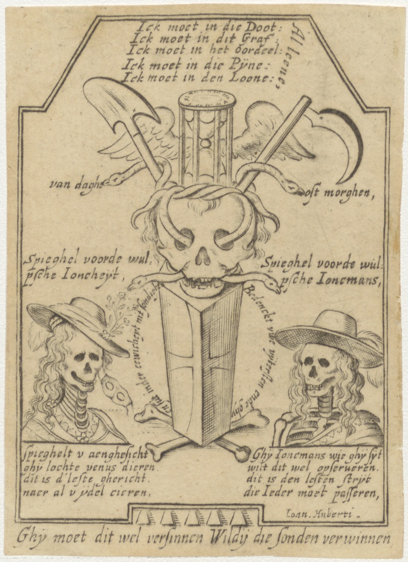 Vanitas met schedel en skeletten