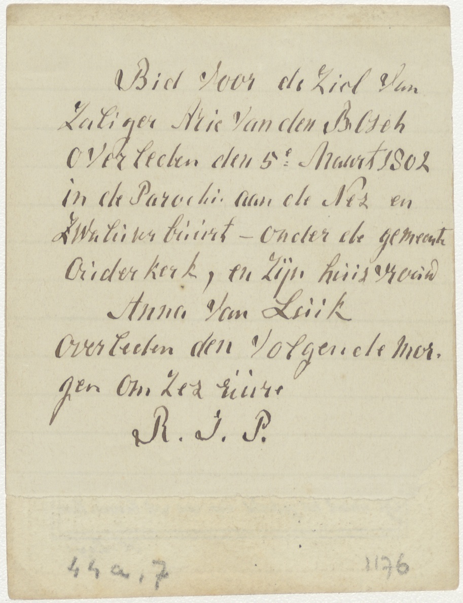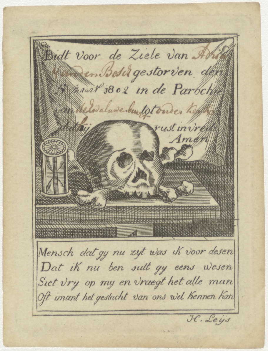 Schedel met tekst, kz. Bid voor ziel Van den Bosch (+1802);Ouderkerk;