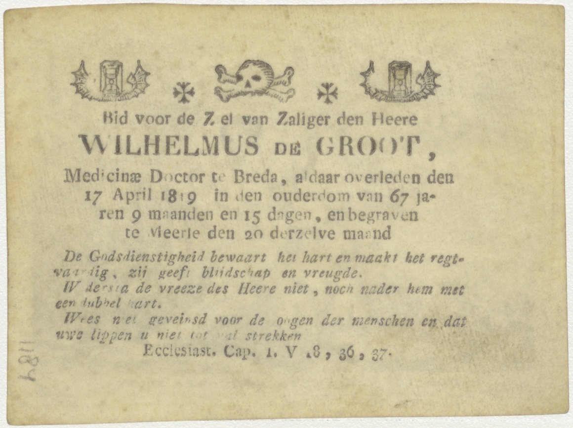 Maria met Christuskind en Johannes, kz. Bid voor ziel De Groot (+1819);Breda;
