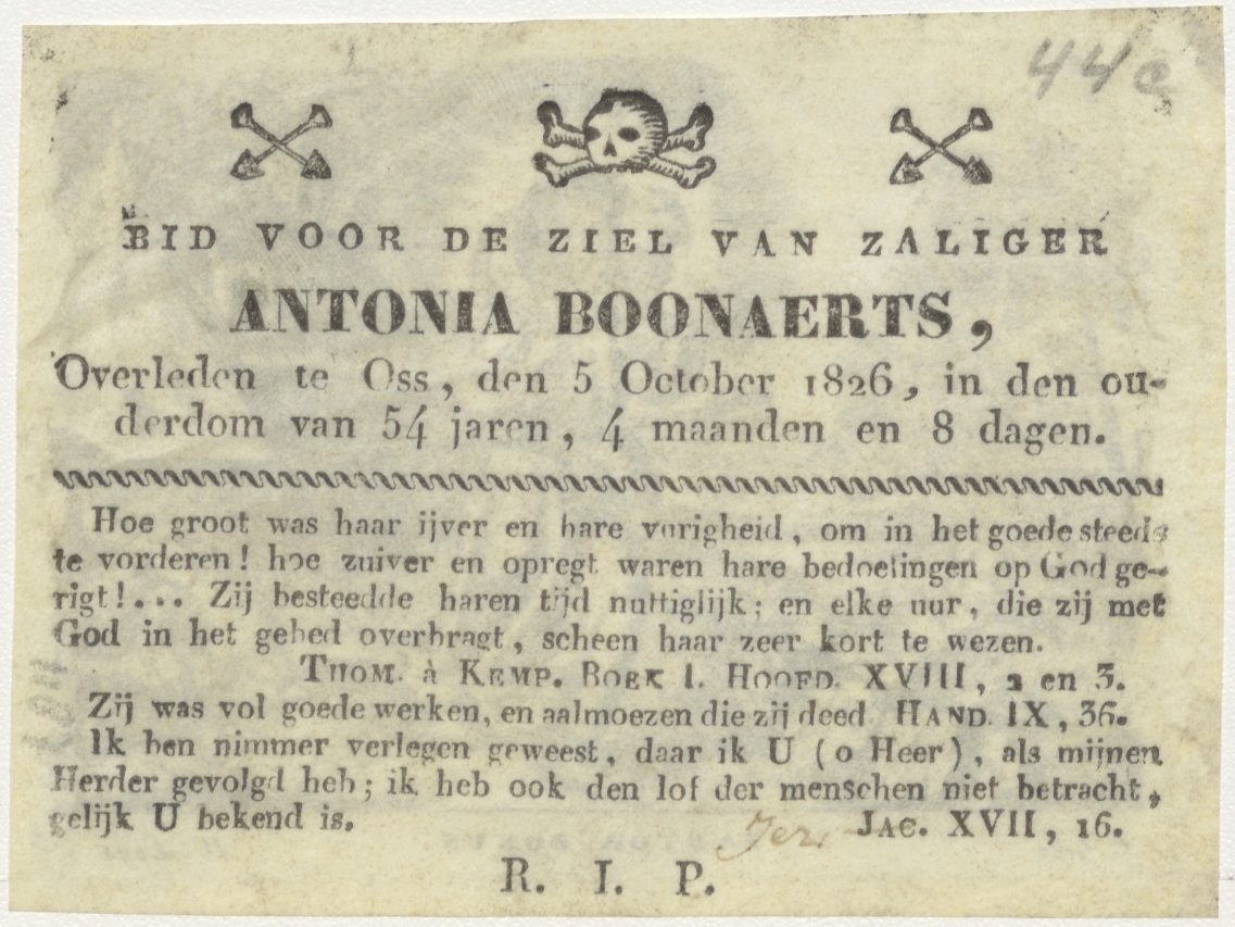 H. Pastor Bunus, kz. Bid voor ziel Boonaerts (+1826);Oss;