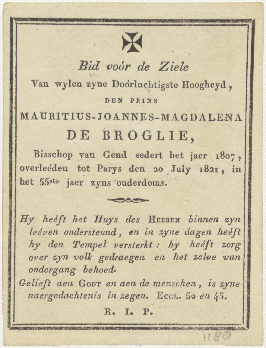 H. Pastor Bunus, kz. Religieus;Bid voor ziel Mauritius de Broglie (+1821);bisschop van Gent;