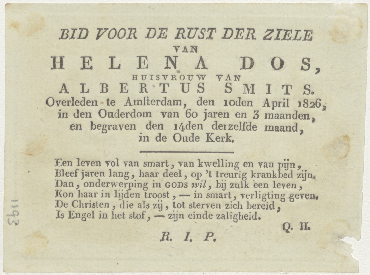 Kroning van Maria, kz. Bid voor ziel Smits-Dos (+1826);Amsterdam;