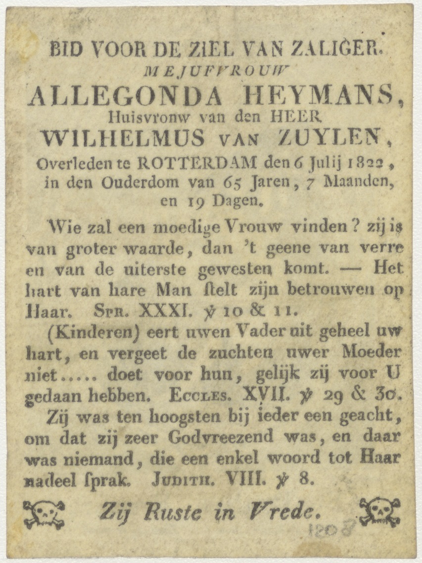 H. Paulus heremiet, kz. Bid voor ziel Van Zuylen-Heymans (+1822);Rotterdam;