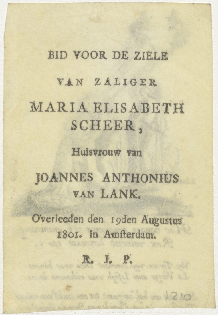 H. Teresa, H. Jozef, kz. Bid voor ziel Van Lank-Scheer (+1801;Amsterdam;