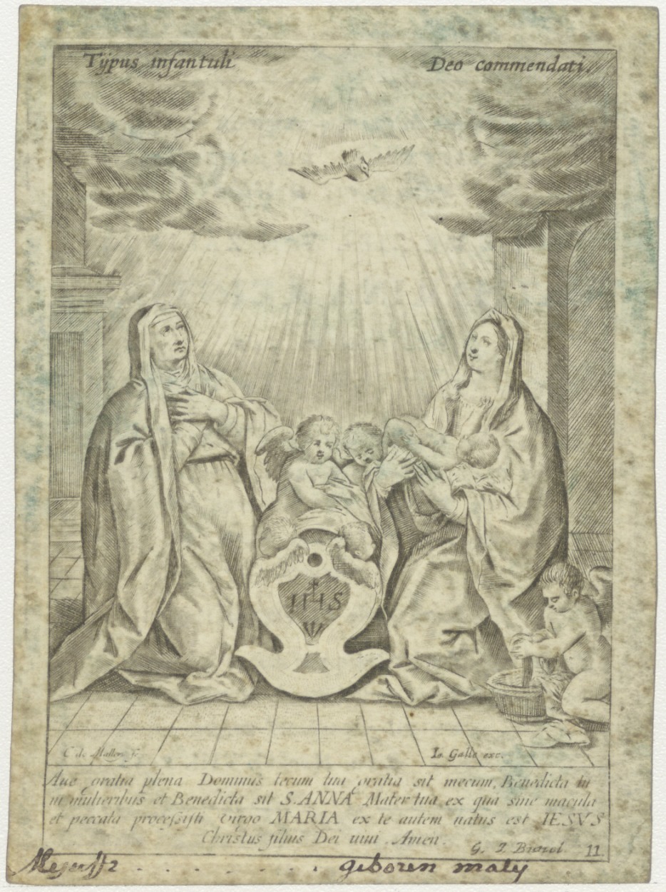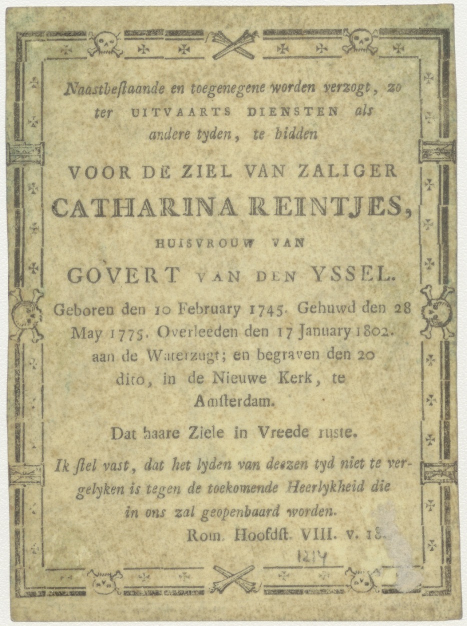 Geboorte van Christus, met teksten, kz. Bid voor ziel Reintjes-Van den Yssel (+1802);Nieuwe Kerk Amsterdam;